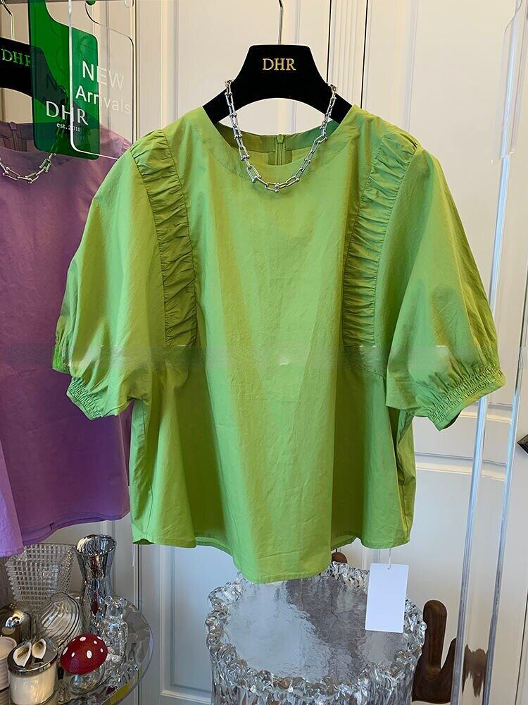 Nomikuma 新因果ひだパフスリーブドールシャツ O ネックプルオーバートップスシックなソリッドスウィートデモーダ 2022 Verano 大人ガーリー キュート カジュアル Oネック ソリッドカラー kor93918944313