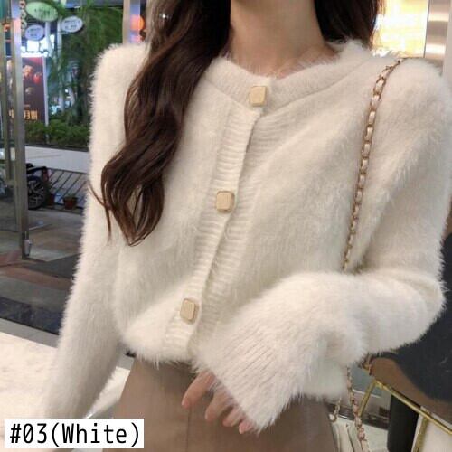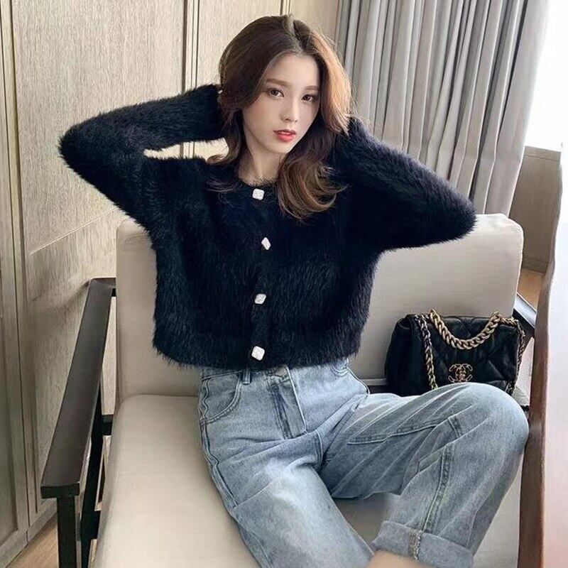 Nomikuma フェイクミンクカシミヤショートカーディガン女性秋冬ニットコート 2022 シックな固体甘いセーター生き抜く 大人ガーリー スウィート キュート カジュアル オータム 秋物 ウィンター 冬物 ファー ソリッドカラー kor77688525323