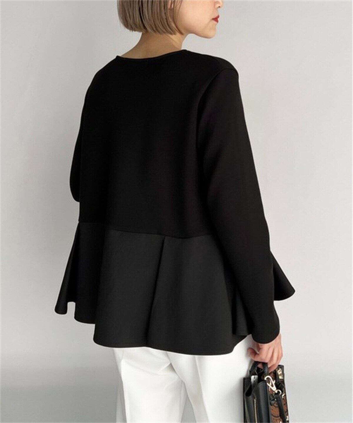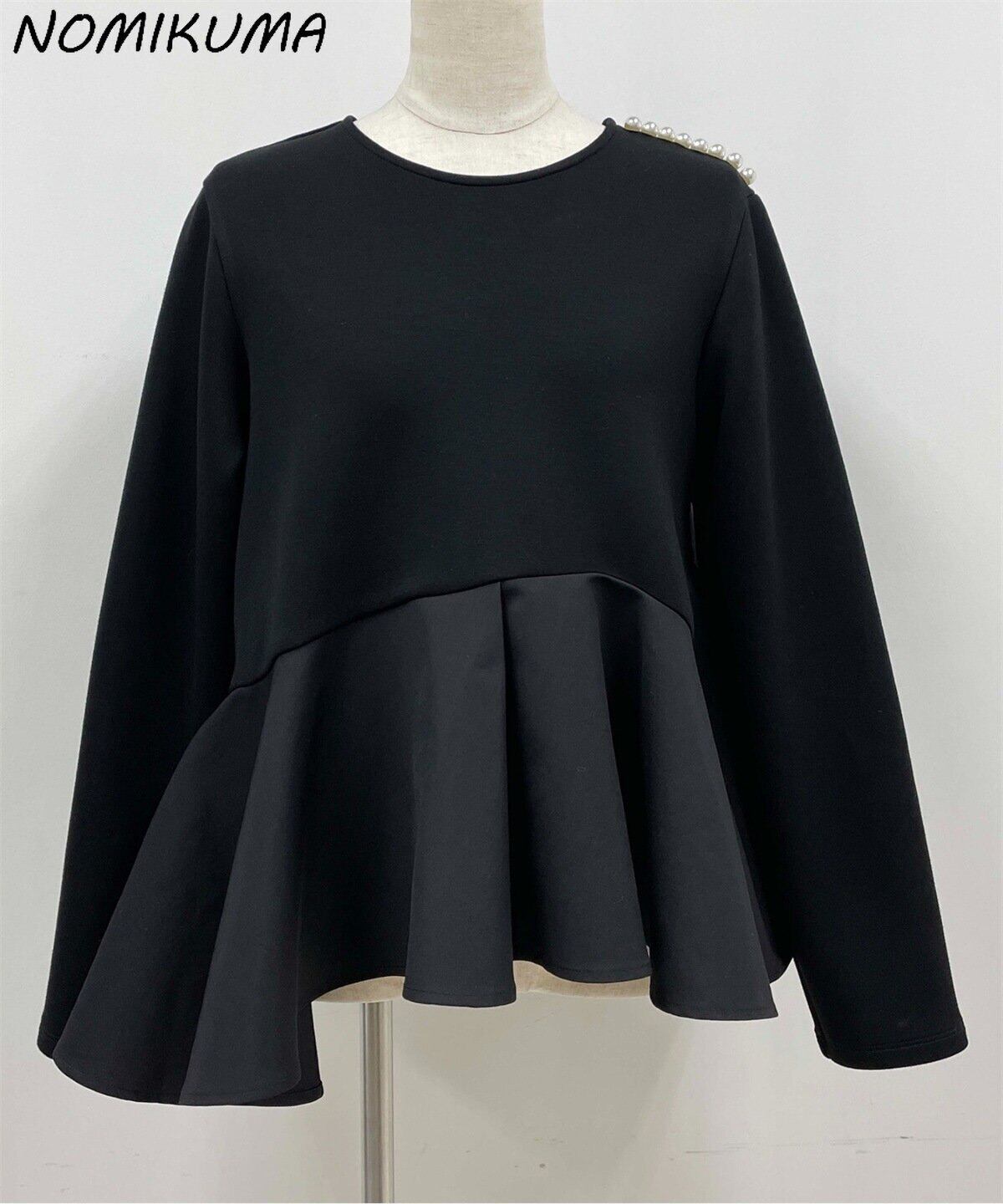 Nomikuma 秋パーカー女性ビーズ長袖 O ネックプルオーバージャンパー因果ヒットカラーフリルパッチワークスウィートスウェットシャツ ロング 大人ガーリー キュート カジュアル オータム 秋物 Oネック kor9595116611