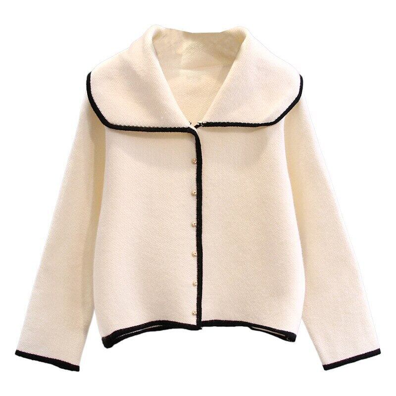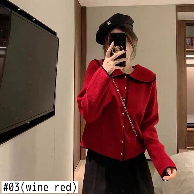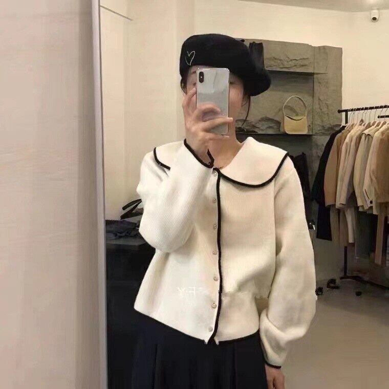 ノミクマ スウィート ヒットカラー ピーターパンカラー セーターコート 2022年秋 長袖 ニット風 ニットカーディガン ロング 大人ガーリー キュート カジュアル オータム 秋物 kor39390797989