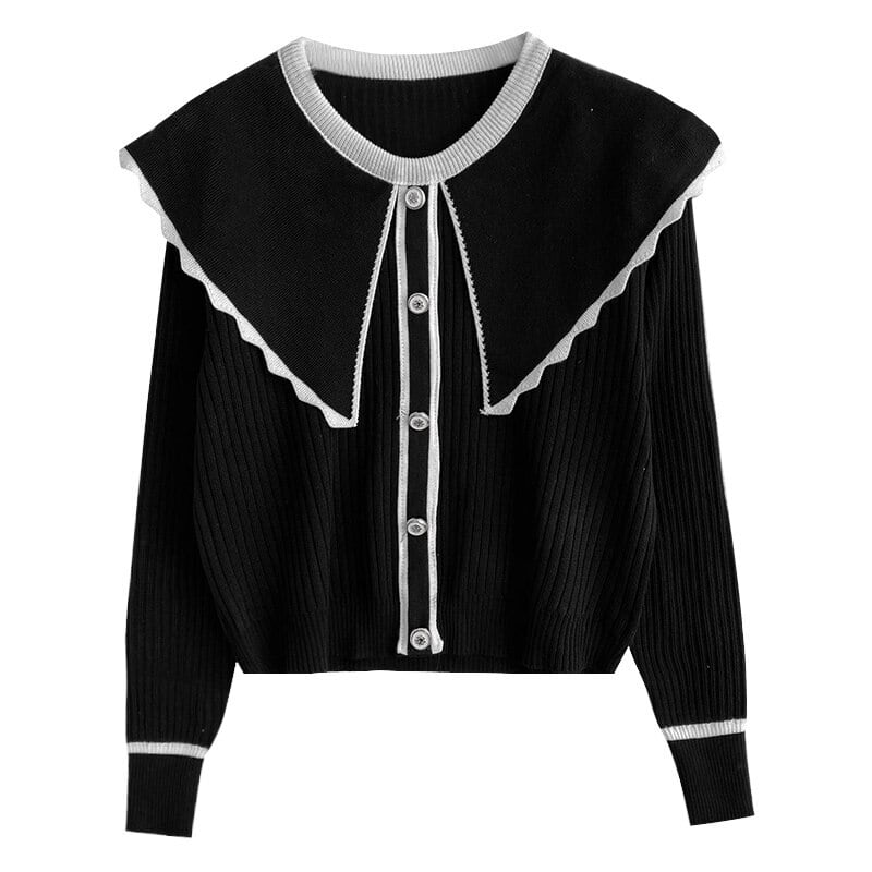 Nomikuma スウィート フリル ヒットカラー Oネック プルオーバー ニット 2022年 秋 シングルブレスト セーター カジュアル 長袖 ニットトップス ロング 大人ガーリー キュート オータム 秋物 kor53599412476