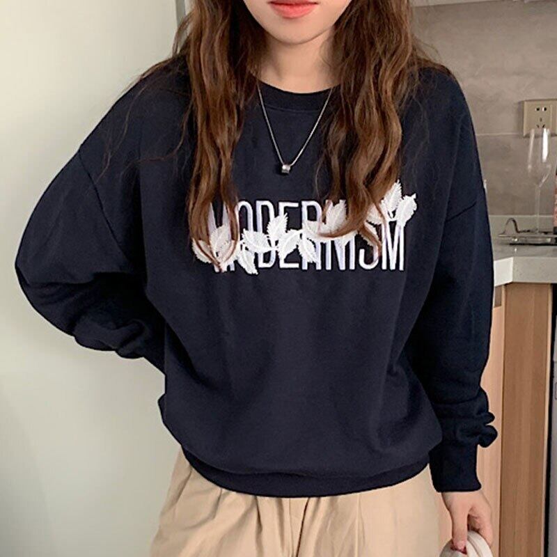 Nomikuma パーカー女性シックな秋 O ネック刺繍花レタープリント因果長袖プルオーバースウェットシャツ ロング オータム 秋物 Oネック フラワーデザイン kor45453295642