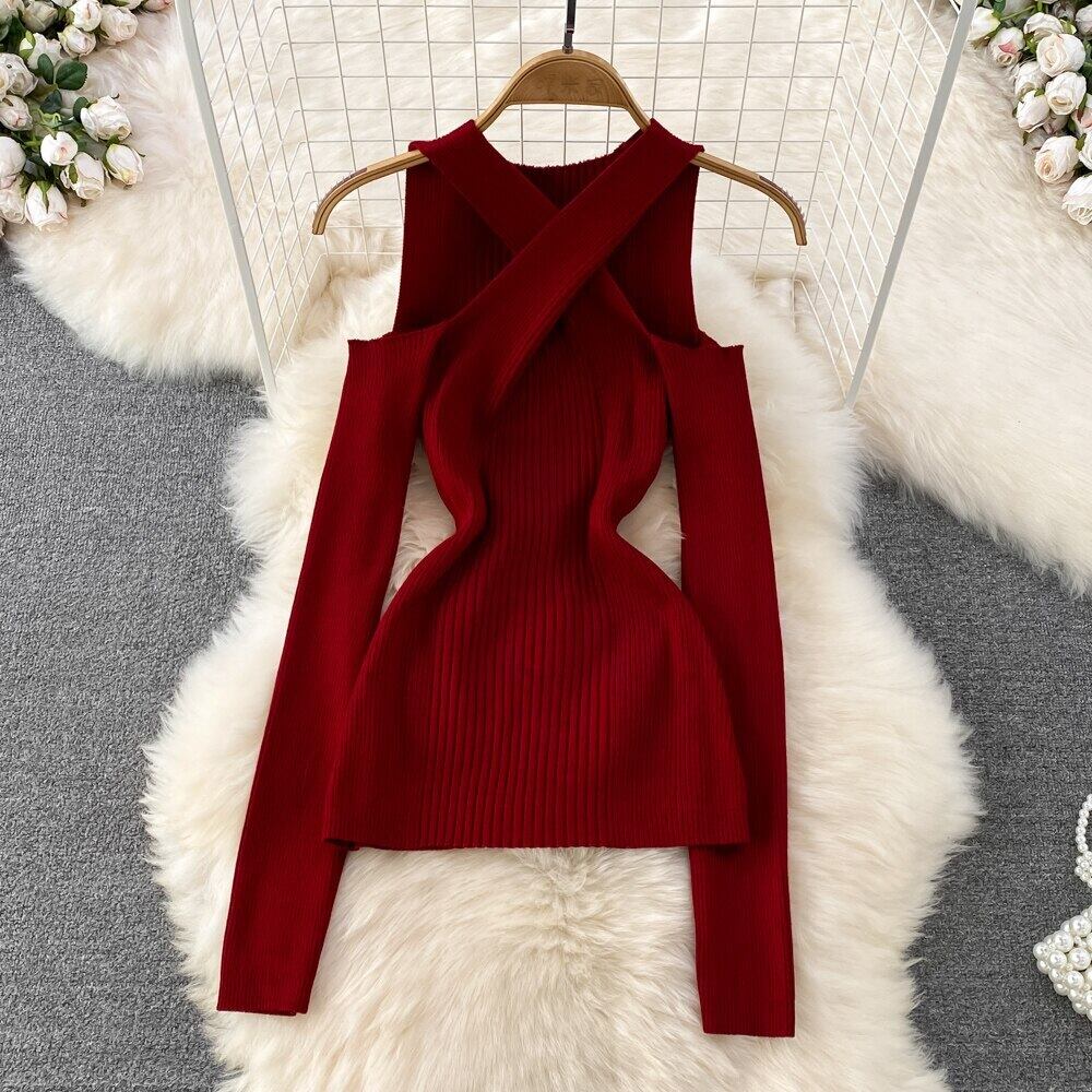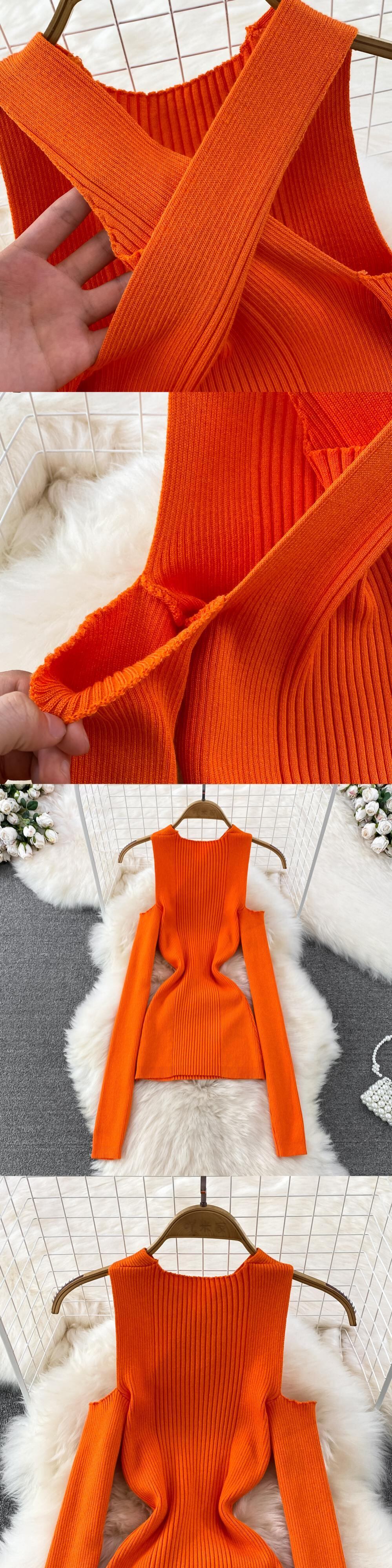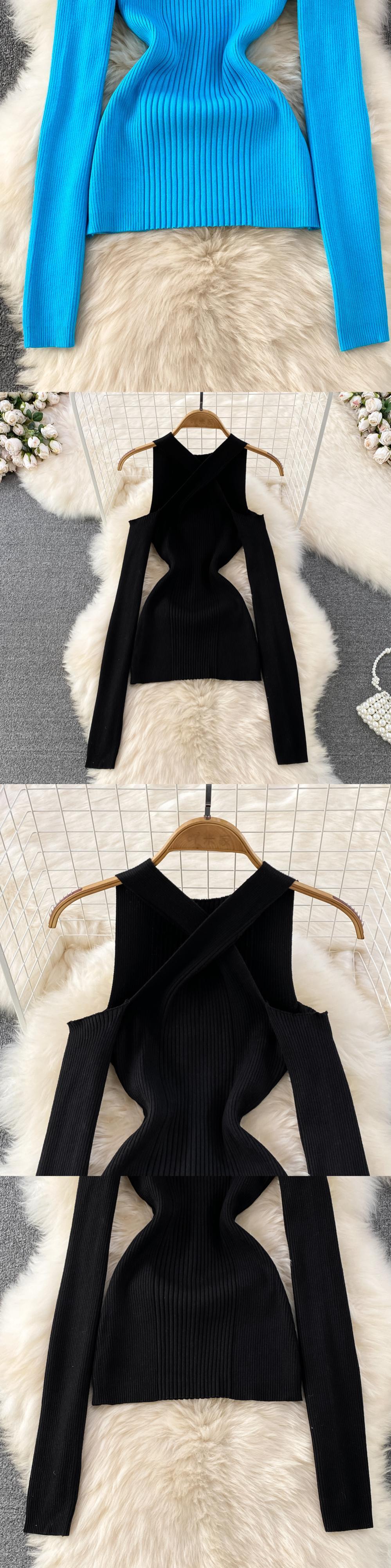 Nomikuma 秋冬セクシーなクロスホルターストラップレス長袖セーター女性 2022 ソリッドベーシックスリムニットトップス ロング オータム 秋物 ウィンター 冬物 ソリッドカラー kor81987276567