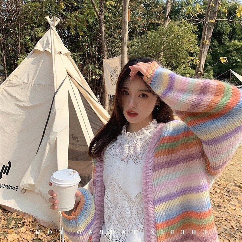 Nomikuma Ranbow ストライプ モヘア ニット カーディガン 因果長袖 V ネック セーター女性秋冬ニット オープン ステッチ ロング オータム 秋物 ウィンター 冬物 Vネック kor29709768270