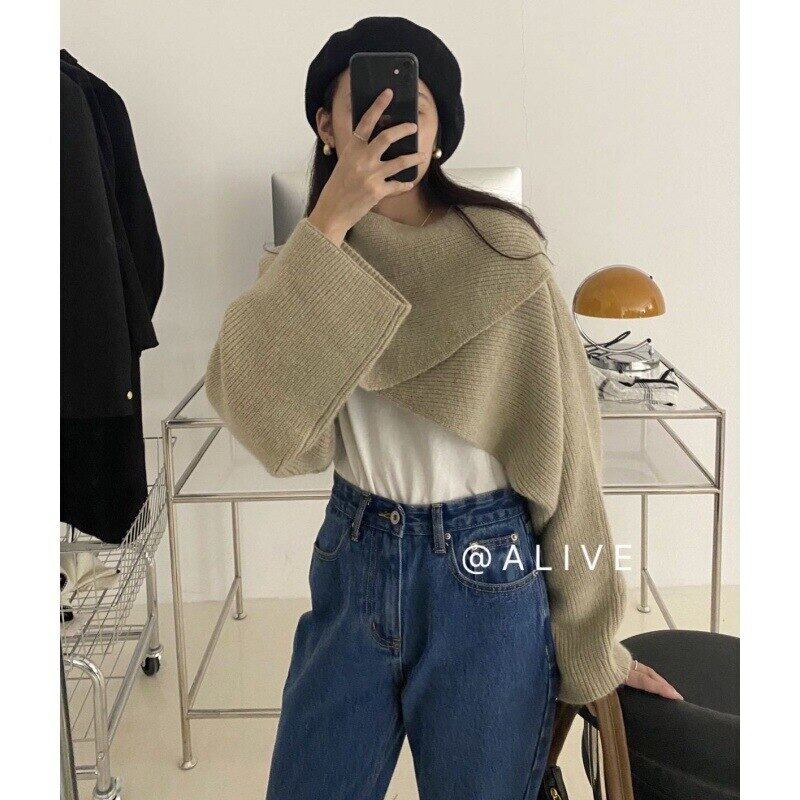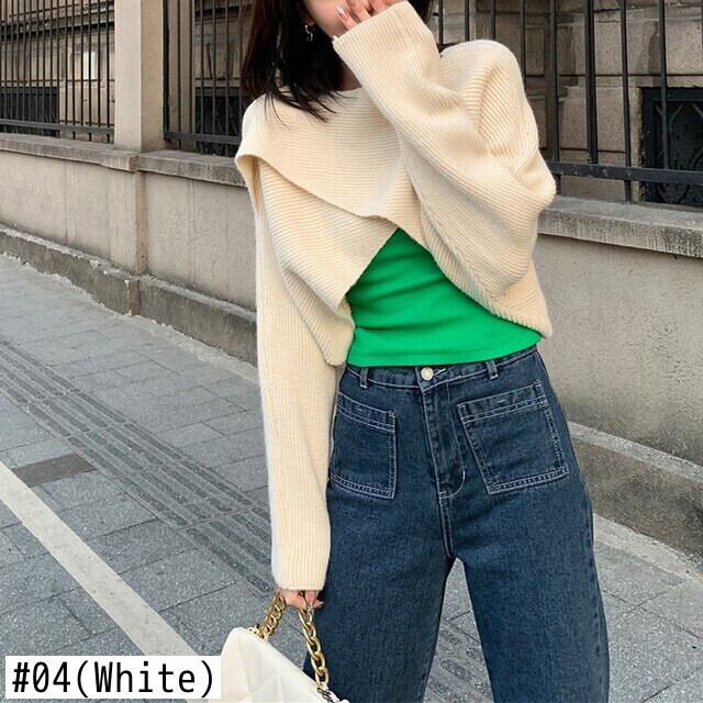Nomikuma 秋冬不規則クロッププルオーバーセーター長袖 O ネックニットショールコートトップ因果女性ニット ロング オータム 秋物 ウィンター 冬物 Oネック kor58856601833