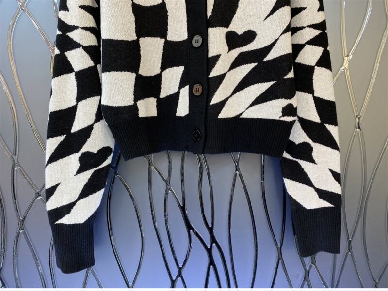Nomikuma Vネックラブハートアーガイルショートニットカーディガン女性秋冬因果長袖セーターコート ロング オータム 秋物 ウィンター 冬物 kor13883769101