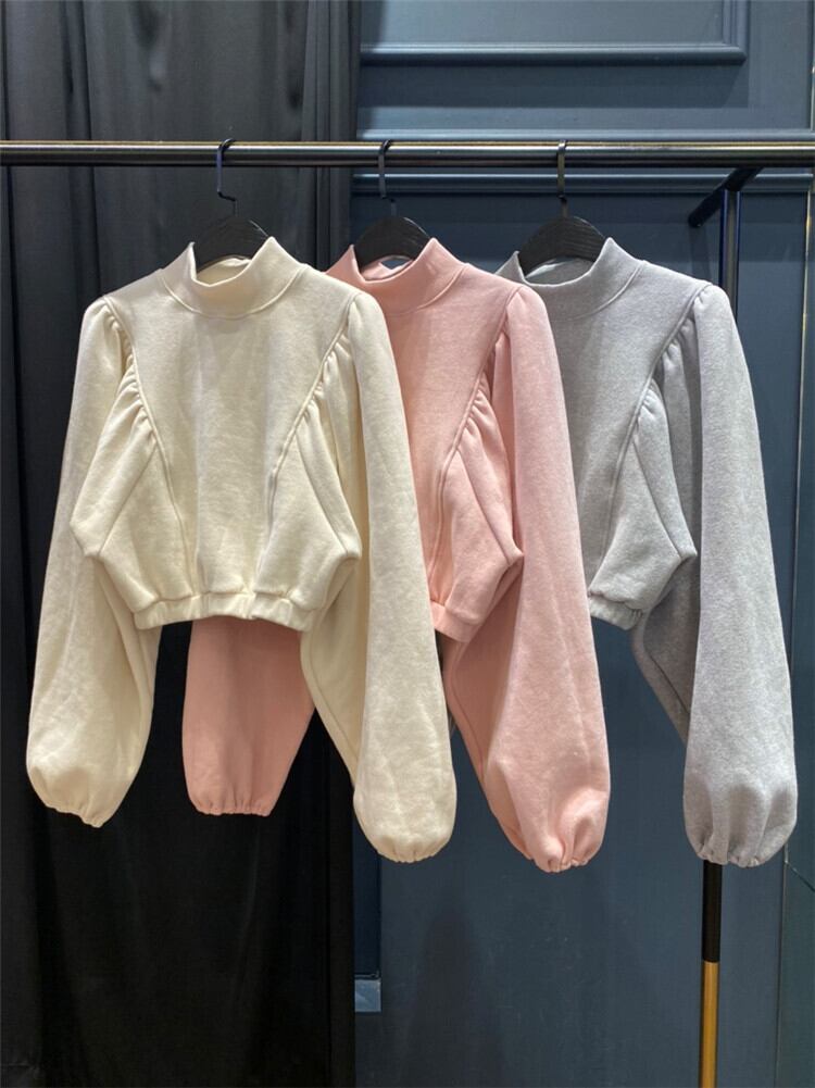 Nomikuma 2022 O ネックひだパフスリーブプルオーバースウェットシャツ因果無地女性ジャンパー秋パーカートップ オータム 秋物 Oネック ソリッドカラー kor37038815462