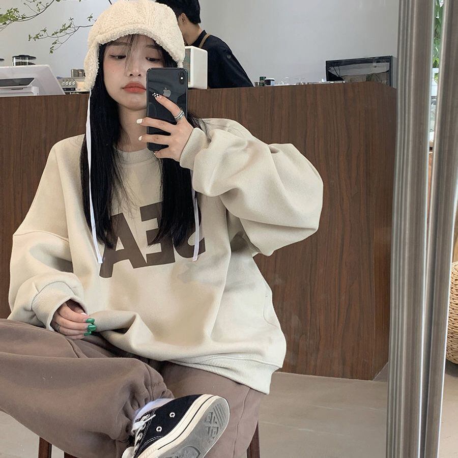 Nomikuma 女性秋冬 Cauasl プルオーバースウェットシャツ手紙長袖 O ネック女性ジャンパーパーカートップ ロング オータム 秋物 ウィンター 冬物 Oネック kor98401529764