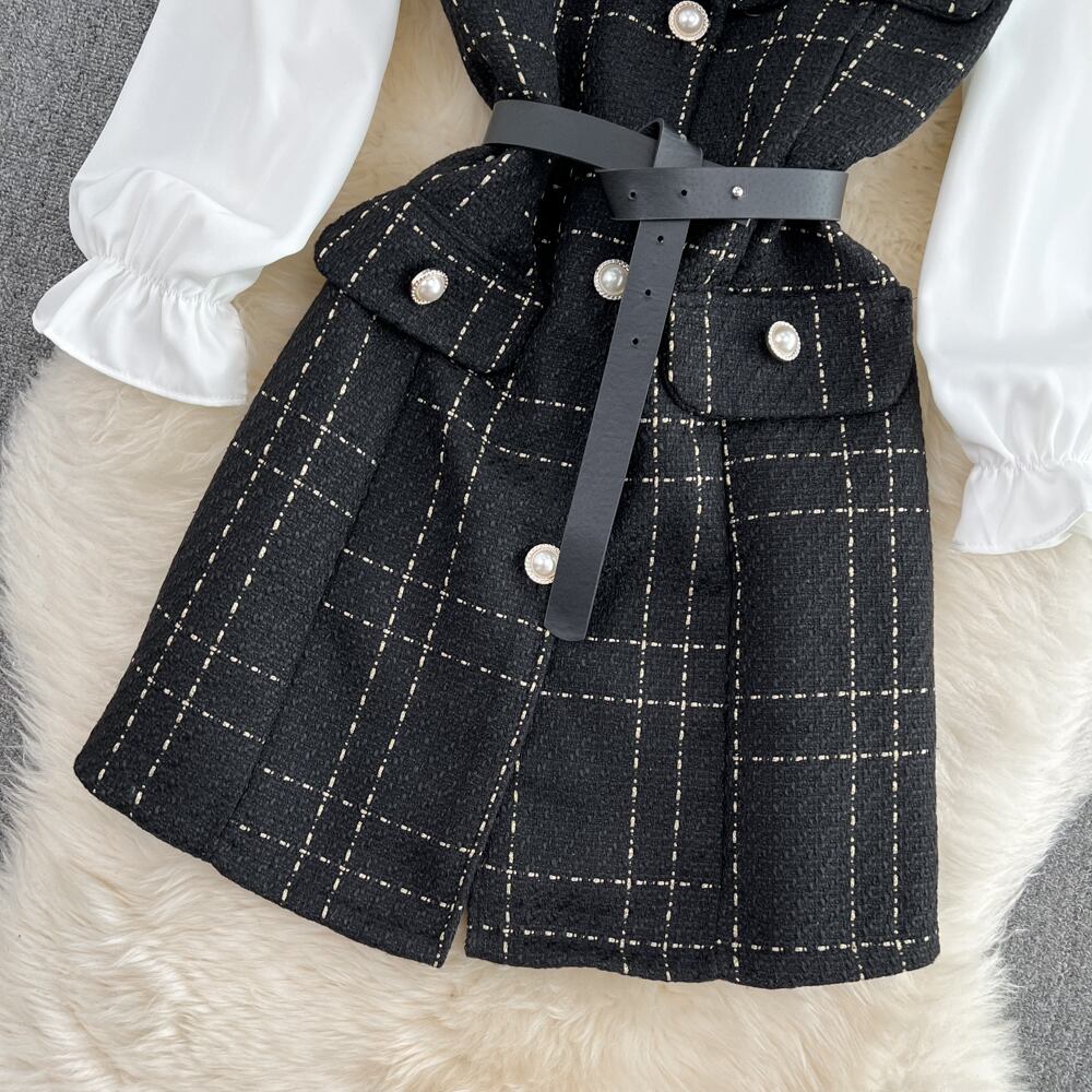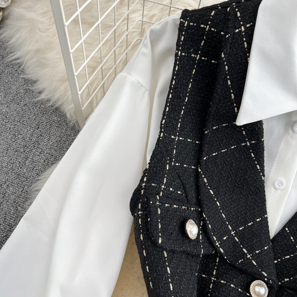 Nomikumaミディアムロングノースリーブターンダウン襟ツイードジャケット女性秋冬ベルトスリムウエストコートベーシックシャツ 長袖 オータム 秋物 ウィンター 冬物 ハーネス kor53856691008