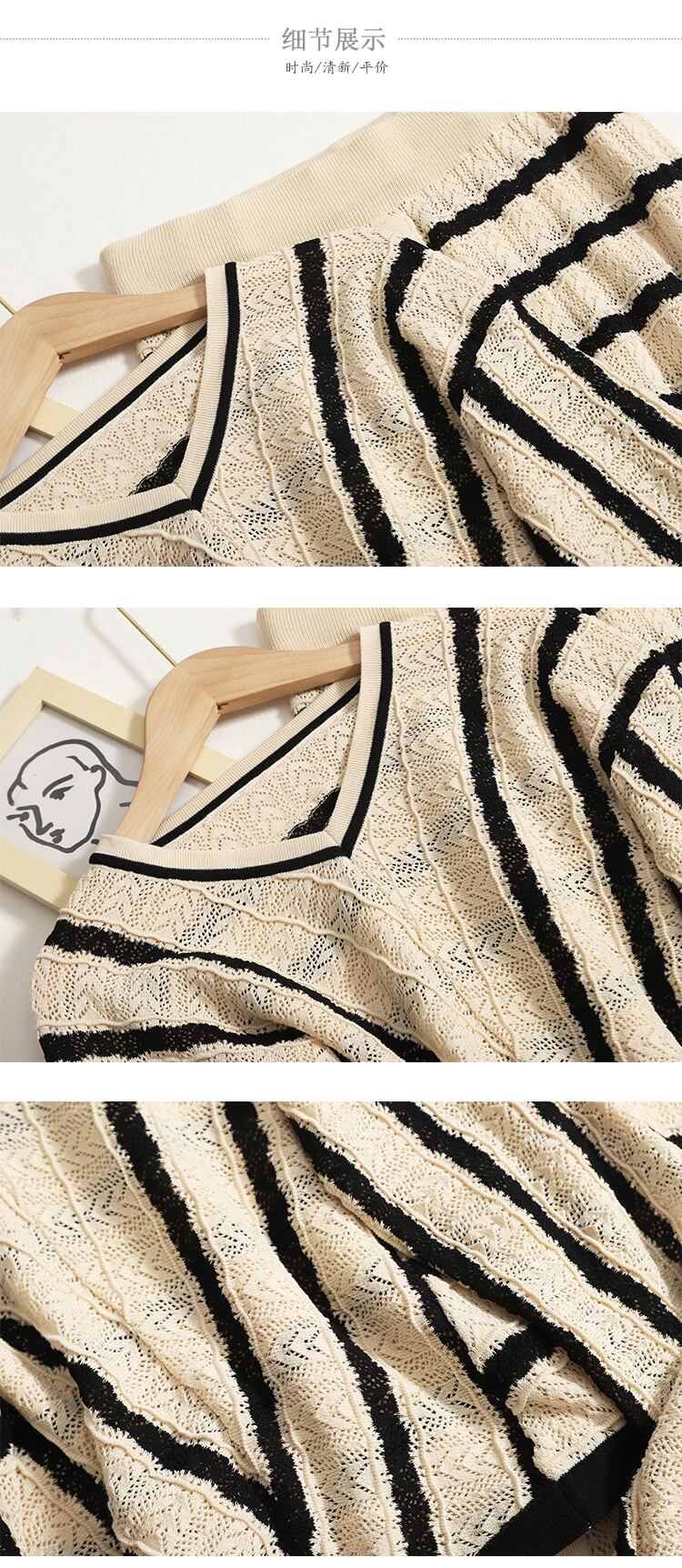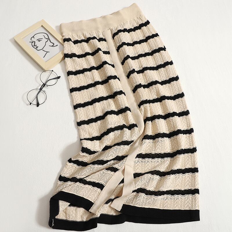 ノミクマ 2022 秋 Vネック ストライプ 長袖 ニットウェア + ウエストスプリット セーター スカート 2点 レディース セット ロング オータム 秋物 kor2177084302