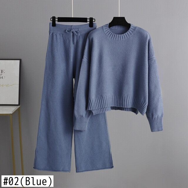 ノミクマ 2022 秋冬 ニットスーツ パンツ レディース セーター ワイドパンツ ズボン 2点セット オータム 秋物 ウィンター 冬物 ワイドレッグ kor9424246058