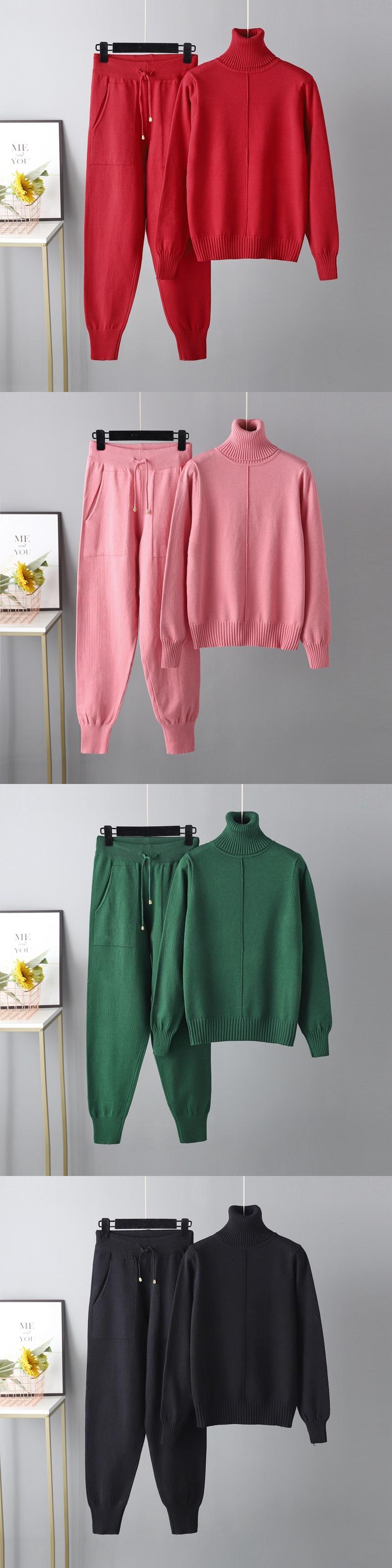 ノミクマスーツ 2022秋冬 タートルネック 無地 セーター ニット風 ハーレムパンツ 2点セット オータム 秋物 ウィンター 冬物 ソリッドカラー kor23992614905