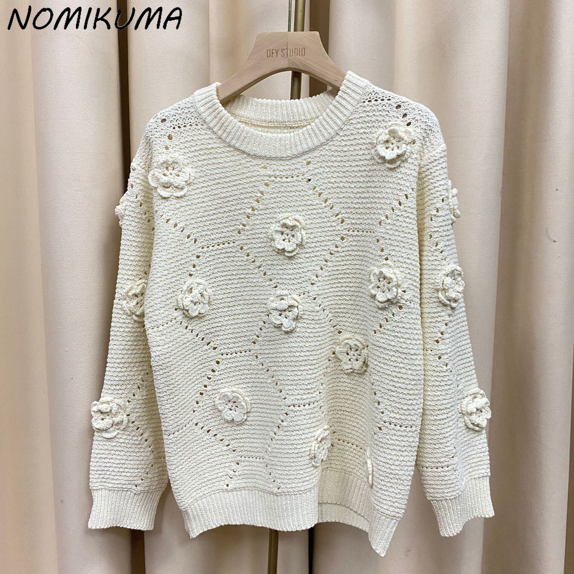 Nomikuma ハンドフックセーター 2022 秋冬プル因果長袖 O ネック女性ニットプルオーバートップス ロング オータム 秋物 ウィンター 冬物 Oネック kor4572493402