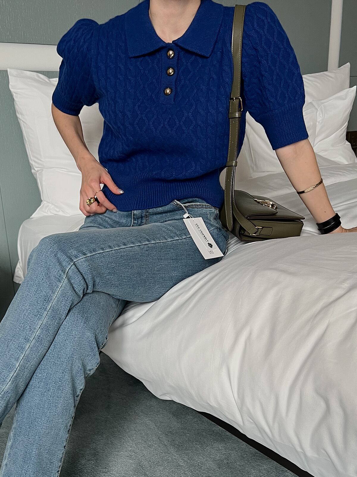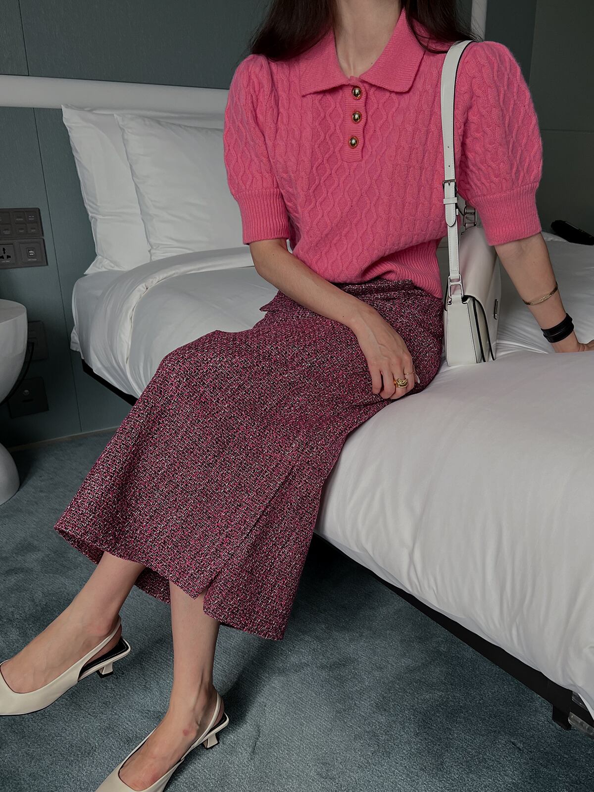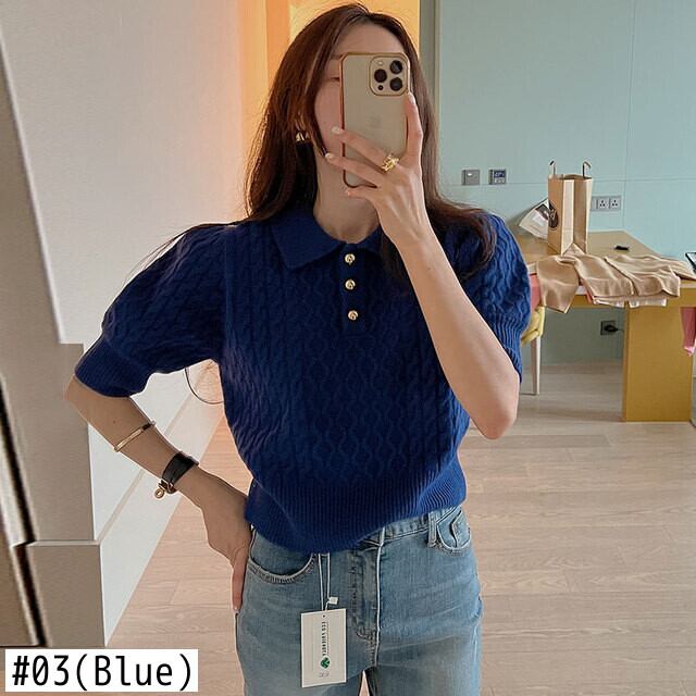 草引ツイストプルオーバーニットシックシックな秋パフスリーブターンダウン襟セーター 2022 甘い女性トップス 大人ガーリー スウィート キュート カジュアル オータム 秋物 kor92167836418