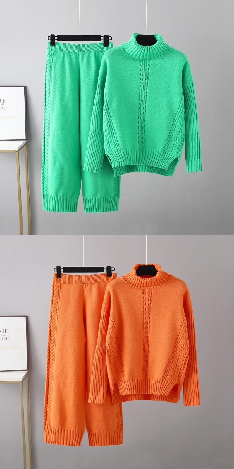 ノミクマ タートルネック プルオーバー ニット セータースーツ レディース 秋冬風 ワイドパンツ 2点セット オータム 秋物 ウィンター 冬物 kor53500208276