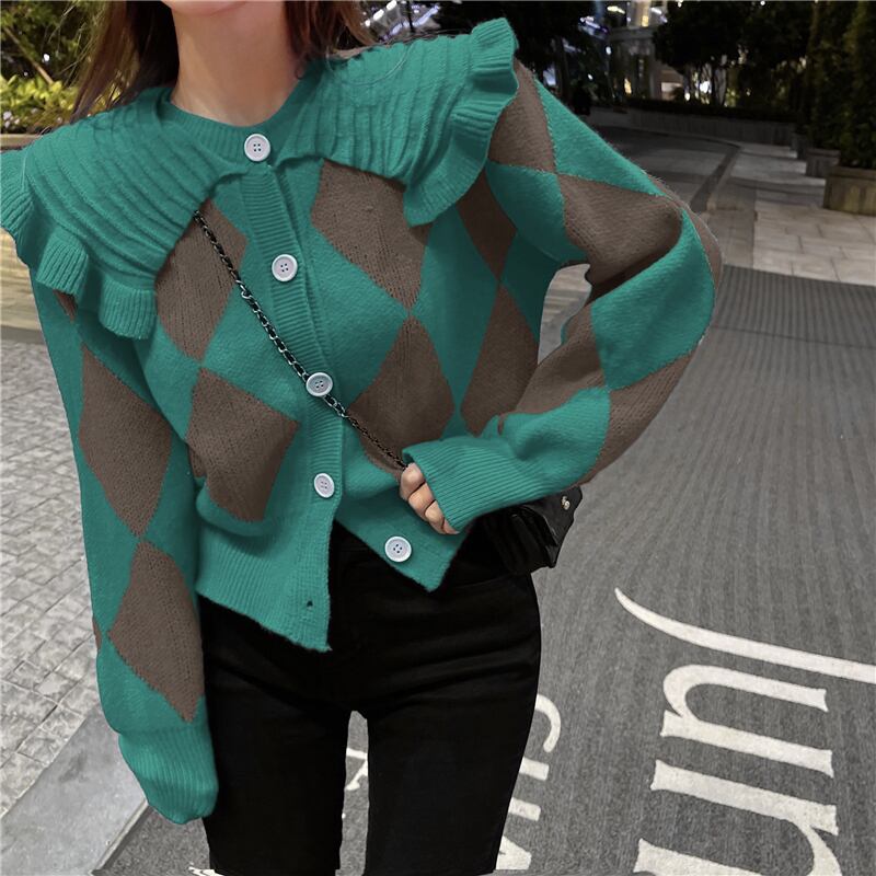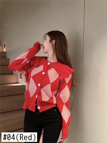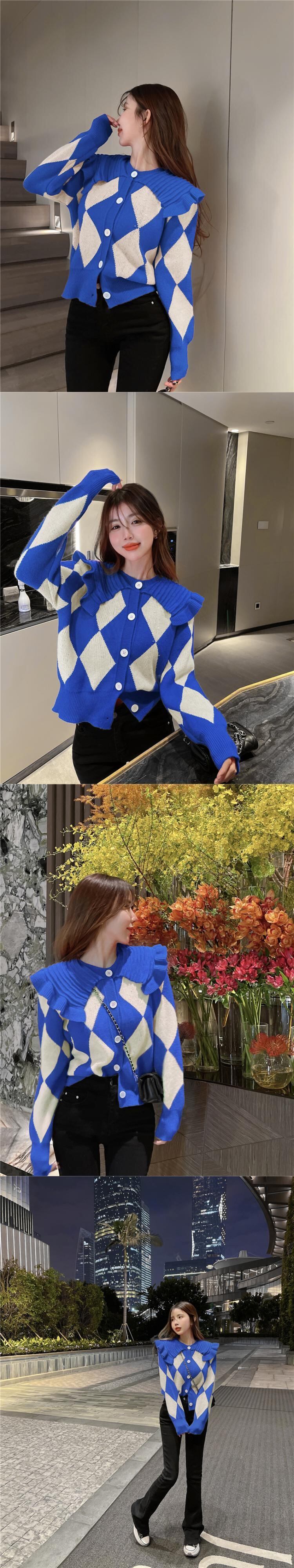 Nomikuma スウィートピーターパン襟アーガイルセーターコート女性秋冬 2022 長袖ニットカーディガン ロング 大人ガーリー キュート カジュアル オータム 秋物 ウィンター 冬物 kor99471945712