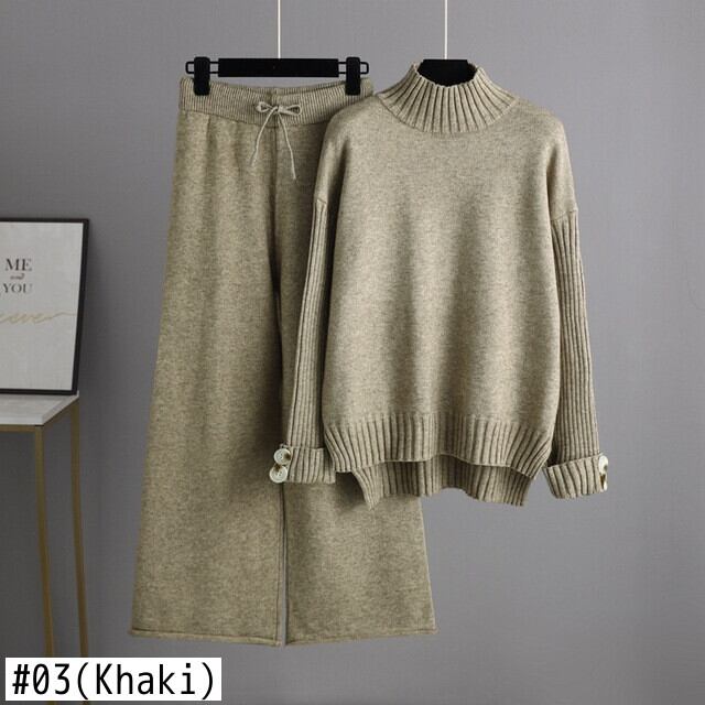 Nomikuma 2022 秋冬ニットスーツ女性のスタイルハーフカラーセーター肥厚因果ツーピーススーツ オータム 秋物 ウィンター 冬物 kor809190570