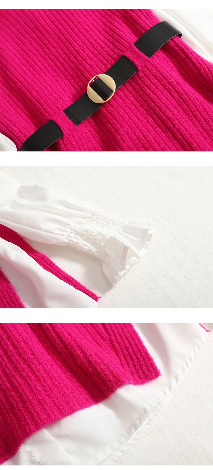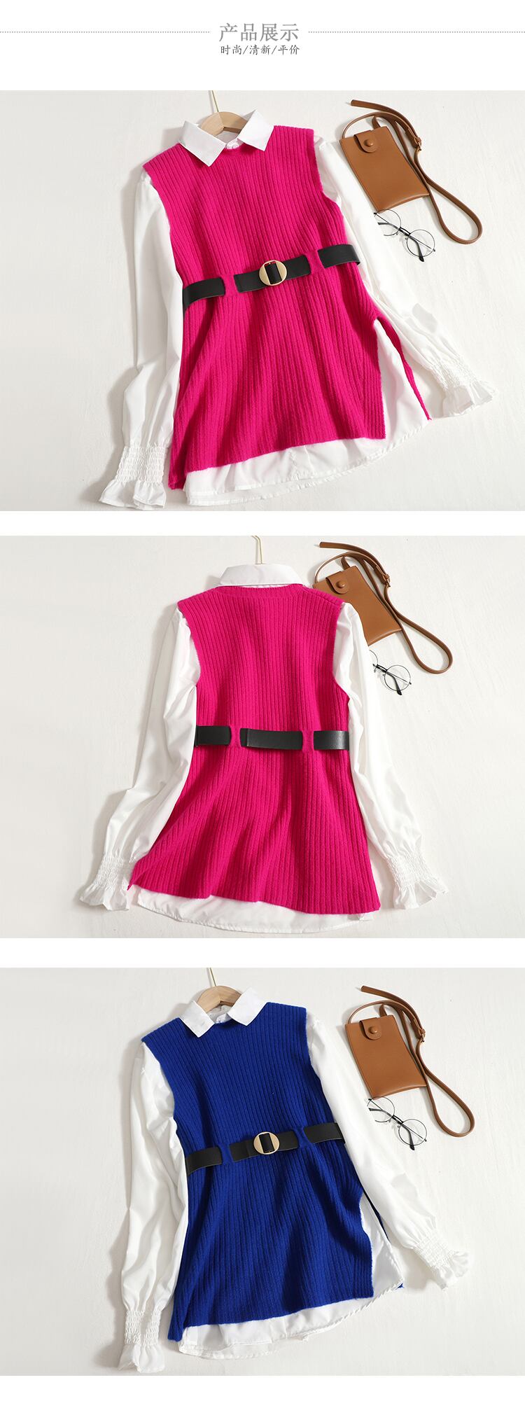 Nomikuma 2022 秋の女性セット無地シングルブレスト長袖ブラウスシャツ + ベルトスリムウエストプルオーバーニットベスト ロング オータム 秋物 ハーネス ソリッドカラー kor23017271607