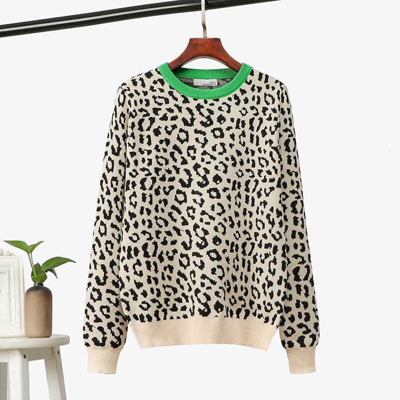 ノミクマ 2022 レディース 秋冬 厚手ニットセーター プルオーバー 豹ジャカード コントラストカラー ルーズボトム ニット オータム 秋物 ウィンター 冬物 kor19472105887
