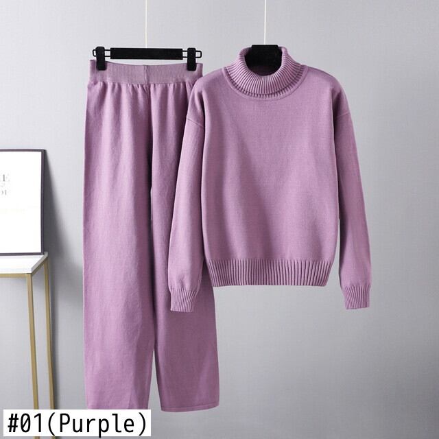ノミクマ タートルネック セータースーツ 2022秋冬 無地 2点 ニットトップ カジュアルパンツ 2点セット オータム 秋物 ウィンター 冬物 ソリッドカラー kor26749417216