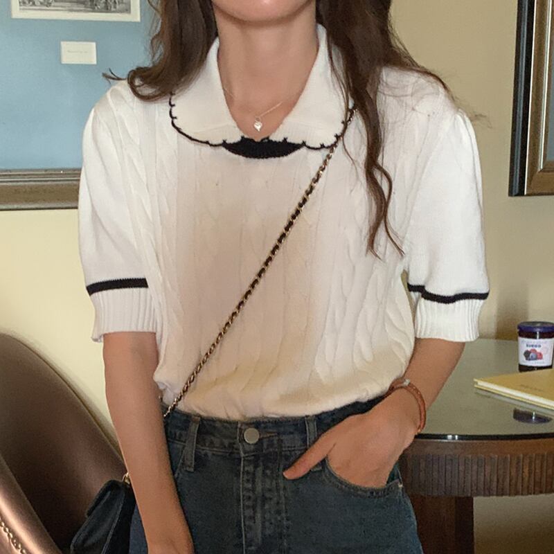 Nomikuma スウィートヒットカラーピーターパン襟ニットシックな秋半袖プルオーバーセーター女性 2022 ニットトップス ショート ハーフスリーブ 大人ガーリー キュート カジュアル オータム 秋物 kor34191354579