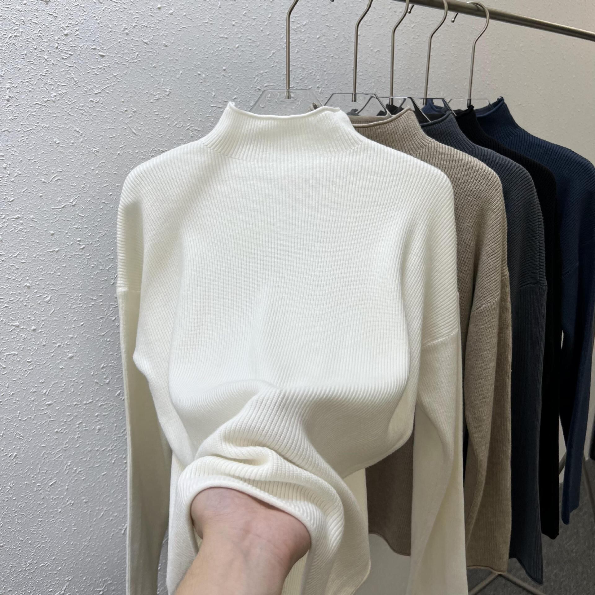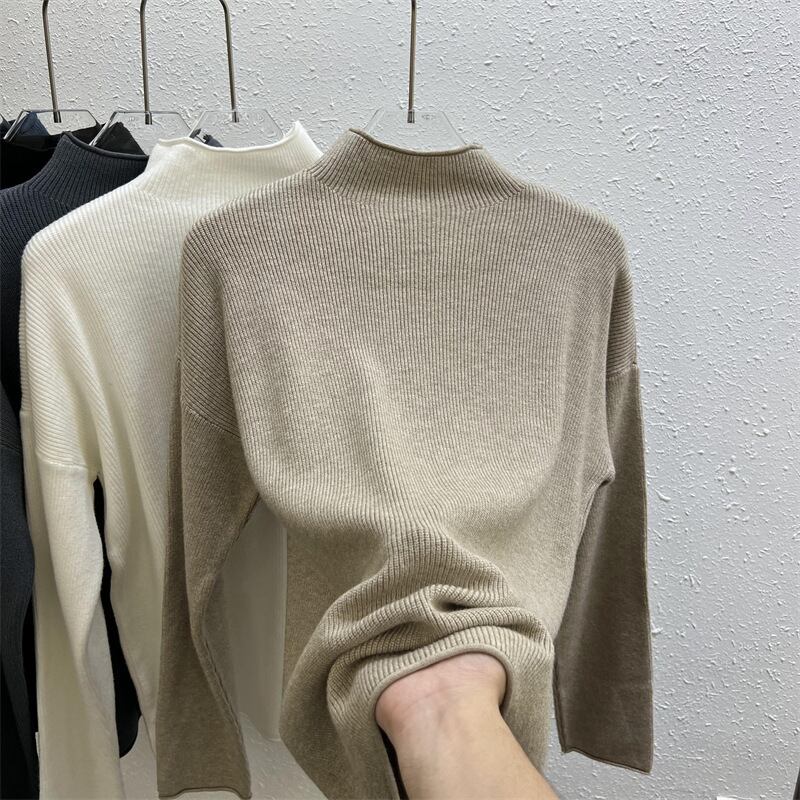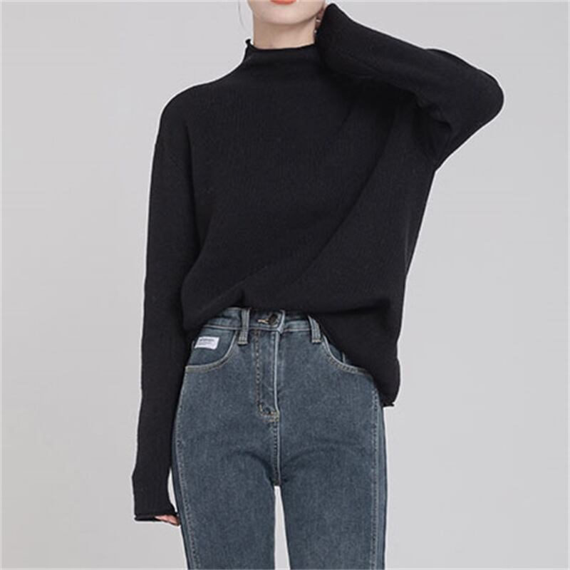 Nomikuma ハーフカラープルオーバーセーター女性 2022 秋冬無地ニットベーシック長袖ニットトップス ロング オータム 秋物 ウィンター 冬物 ソリッドカラー kor70057618105