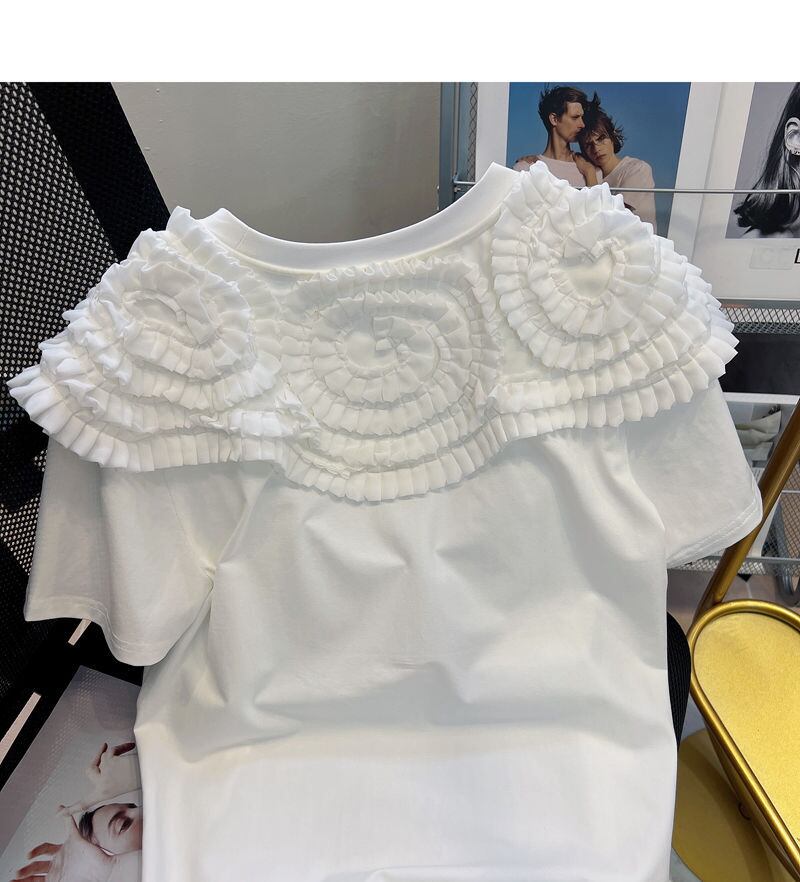 Nomikuma シックな甘い 3D 花シャツ女性 2022 春夏半袖グラフィックトップス因果 O ネックシャツ ショート ハーフスリーブ 大人ガーリー スウィート キュート カジュアル スプリング 春物 サマー 夏物 Oネック フラワーデザイン kor15785615789