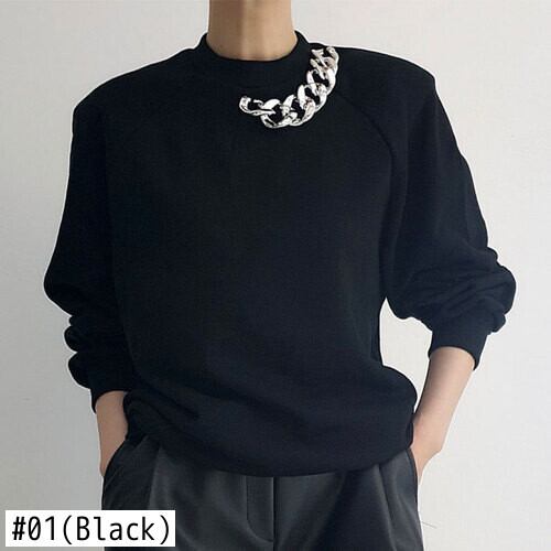 Nomikuma シックな秋の女性トレーナーチェーンパッチワークスタンドネック長袖パーカートップ因果プルオーバージャンパー ロング オータム 秋物 kor29773369390