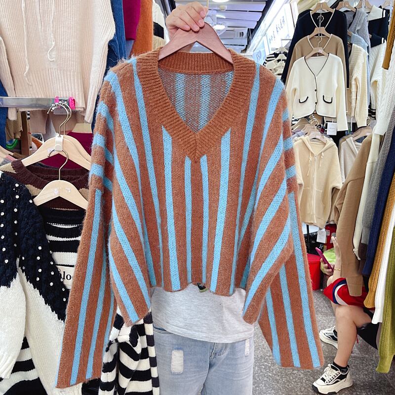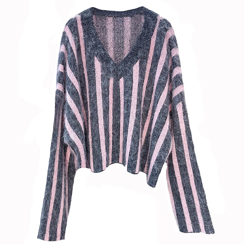 Nomikuma セーター Invierno 2022 秋冬モヘア女性セーター因果長袖 V ネックプルオーバーショートニットトップス ロング オータム 秋物 ウィンター 冬物 Vネック kor4630478833