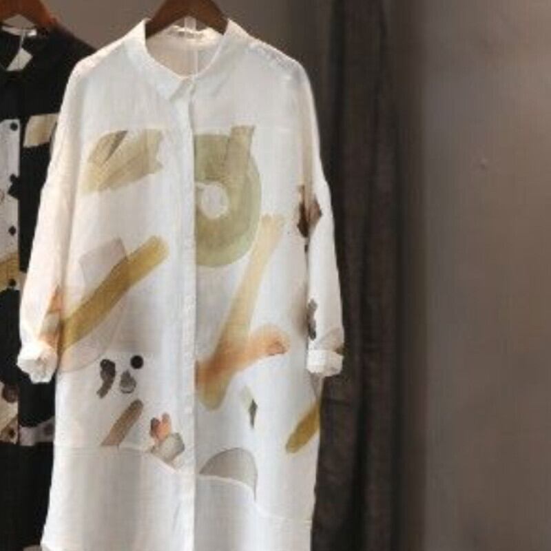 ノミクマ 2021 秋 ミディアムロング ブラウス トップス プリント 長袖 コットンリネン シャツ カジュアルモーダ 6L055 オータム 秋物 kor55007034223