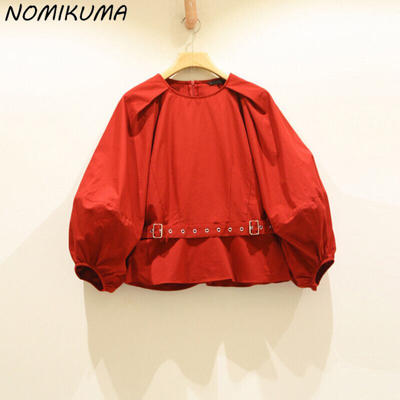Nomikuma スウィートランタンスリーブブラウストップス因果 O ネック女性人形シャツ 2021 秋プルオーバーデ 6Z555 大人ガーリー キュート カジュアル オータム 秋物 Oネック kor93554925683