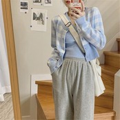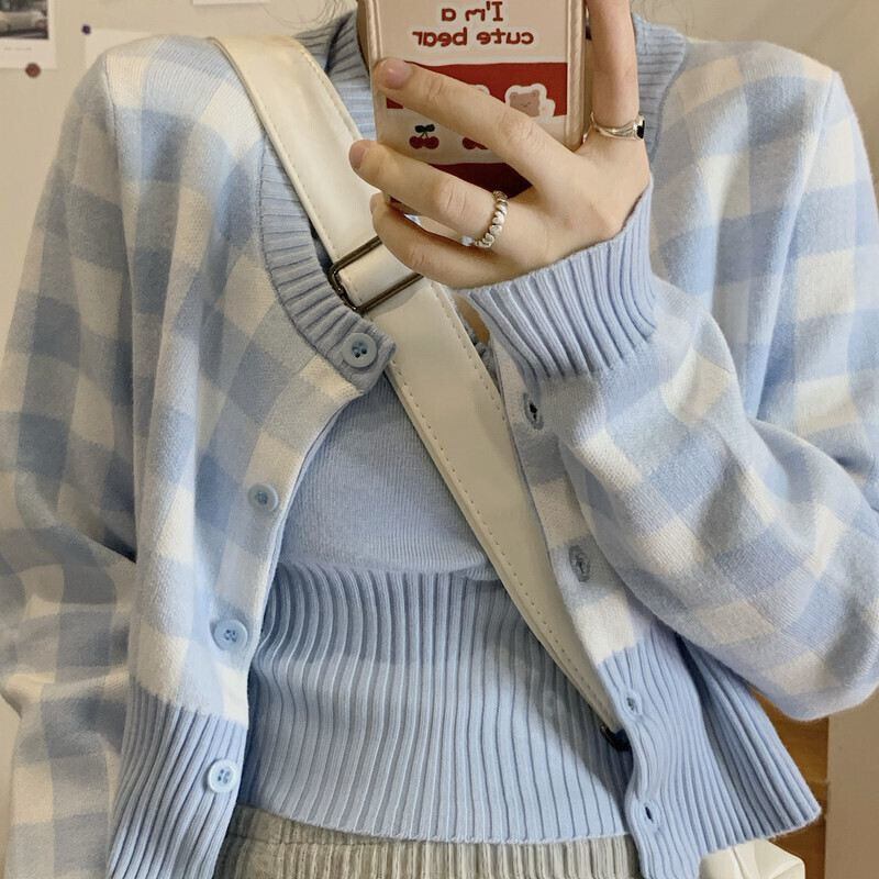 Nomikuma スウィートチェック柄女性セットシングルブレストショートセーターカーディガン + ノースリーブ V ネックベスト 2021 スーツ 6E836 大人ガーリー キュート カジュアル Vネック kor8936900