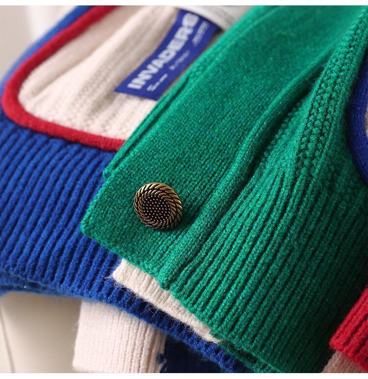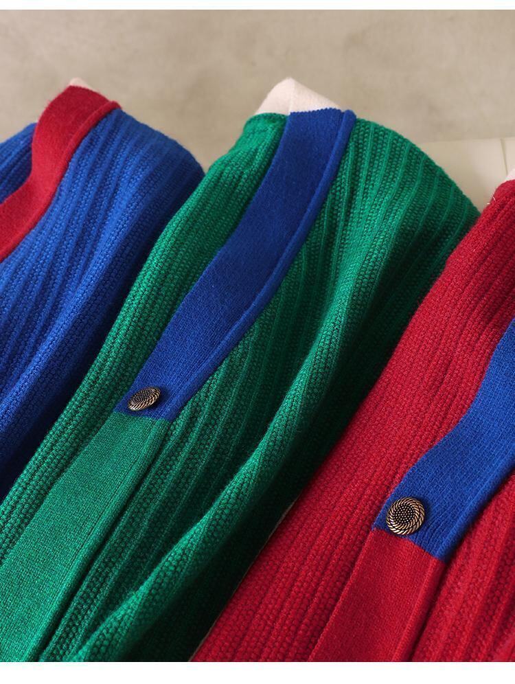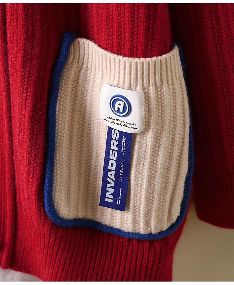 ノミクマ 2022 秋冬 セーター カーディガン 因果 コントラストカラー ポケット ニットコート 長袖 Vネック ジャケット ロング オータム 秋物 ウィンター 冬物 kor73767529460