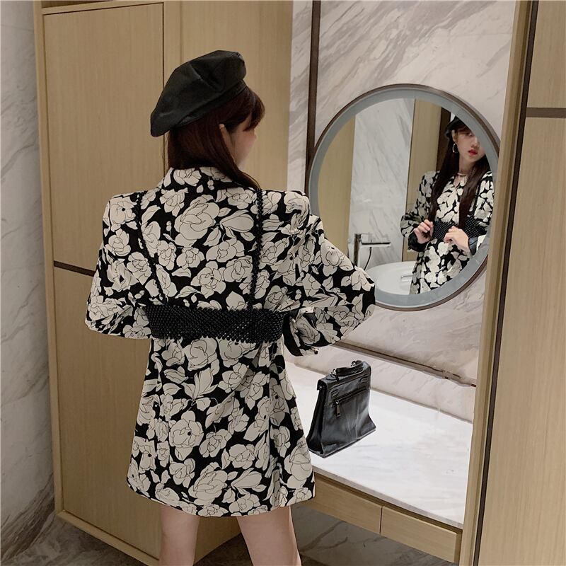 Nomikuma 2022 秋の印刷ブレザーコートノッチ襟長袖ブレザー + シックなビーズスリングベスト 2 点セット ロング オータム 秋物 kor39599008296