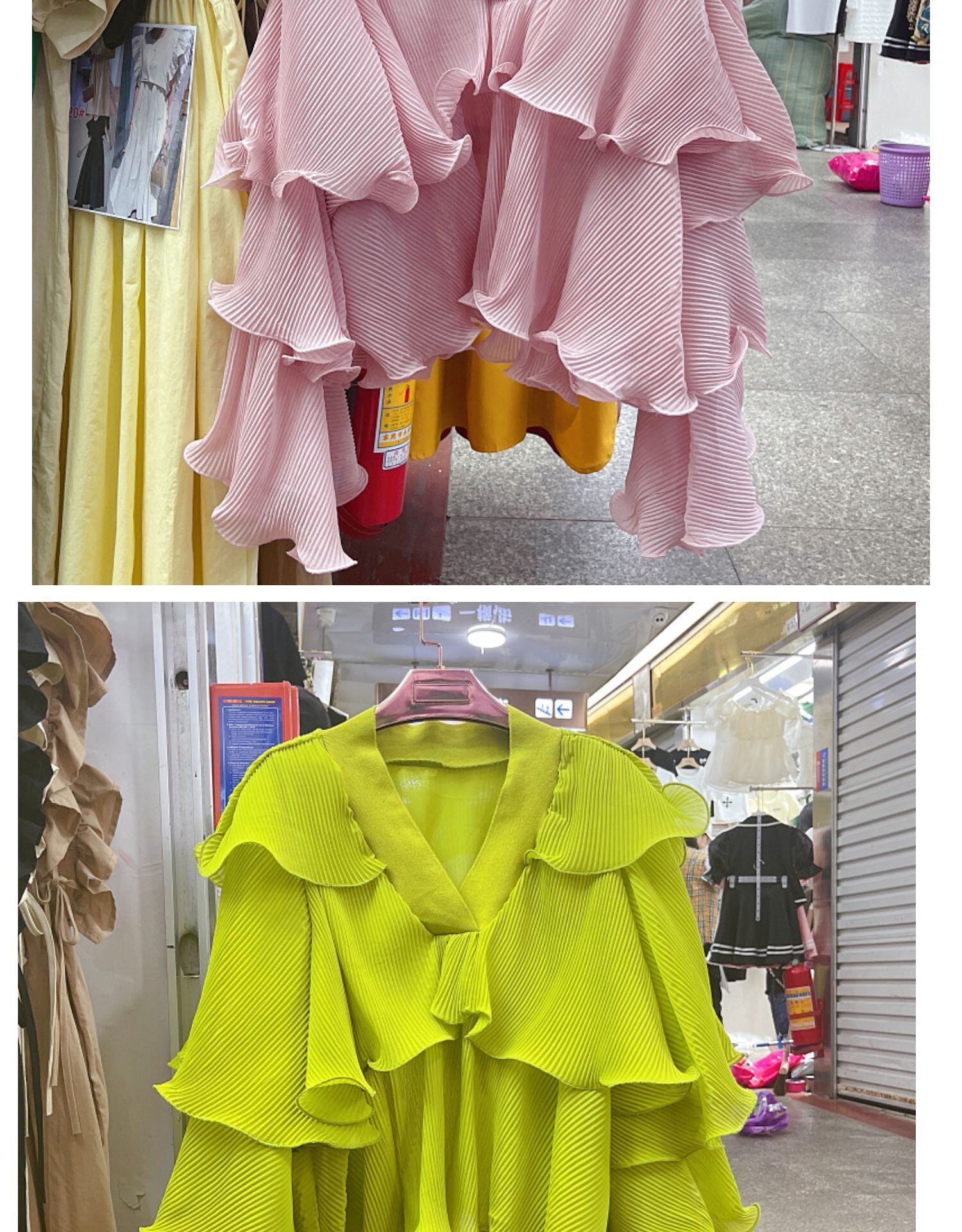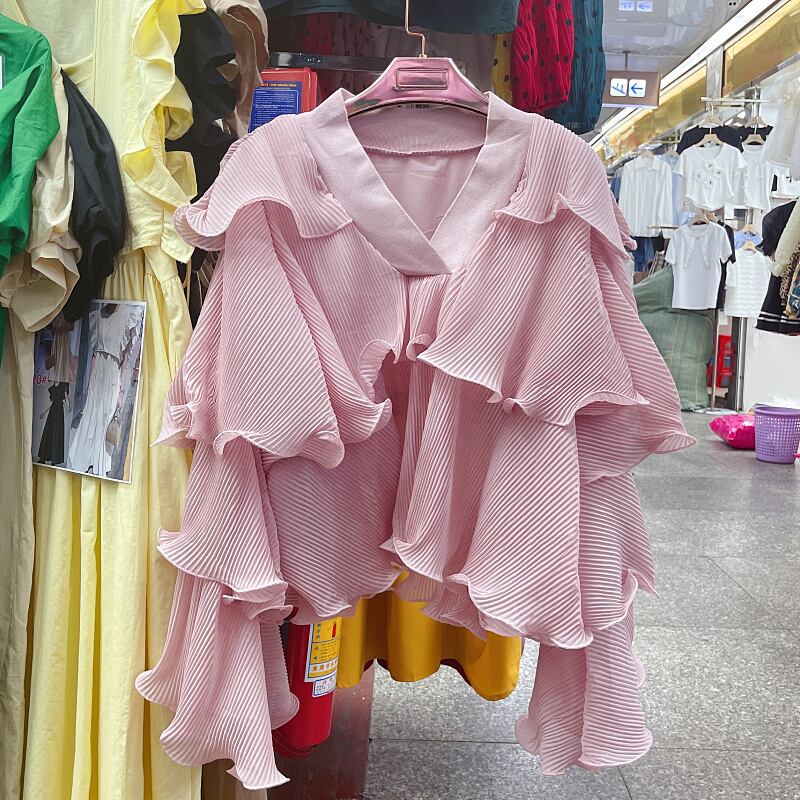 Nomikuma 2022 春レイヤードフリルシフォントップス因果フレアスリーブ V ネック女性ブラウスデ スプリング 春物 Vネック kor83013483219