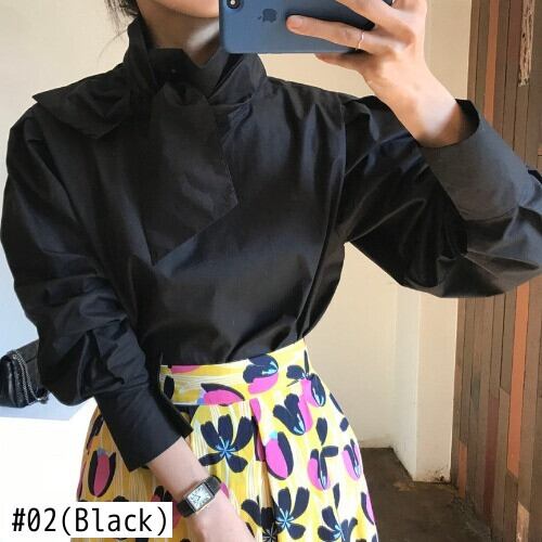 Nomikuma シックな蝶ネクタイスタンドネックブラウス女性因果パフ長袖プルオーバートップス 2022 春シャツ ロング リボン スプリング 春物 kor99572420868
