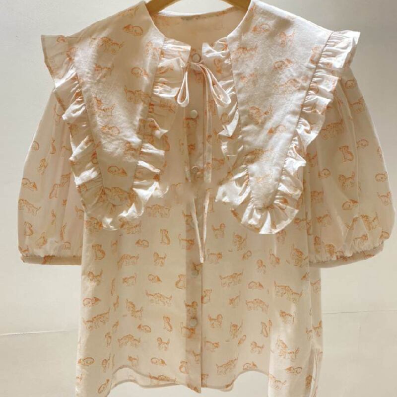 Nomikuma 2021 夏水玉ブラウス因果蝶ネクタイフリル Poater パン襟女性シャツスウィートトップ 6H119 リボン 大人ガーリー キュート カジュアル サマー 夏物 kor8520050821