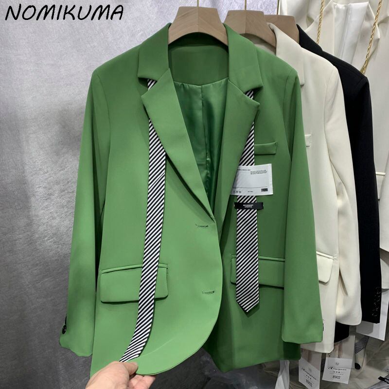 Nomikuma 因果ストライプネクタイスーツジャケット女性 2022 春ブレザー長袖ターンダウン襟シングルブレストコート ロング スプリング 春物 kor57814598654