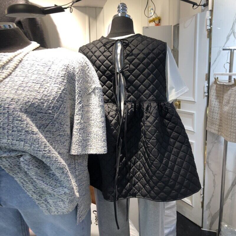 Nomikuma ノースリーブ蝶ネクタイ O ネック女性ベスト 2021 因果アーガイル生き抜く甘いベスト 6H997 リボン 大人ガーリー スウィート キュート カジュアル Oネック kor98005944521