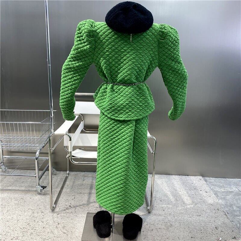 Nomikuma レディース 衣装 パフスリーブ Vネック フォールド トップス + ウエストスリムスカート 2点セット 2022 kor56858781600