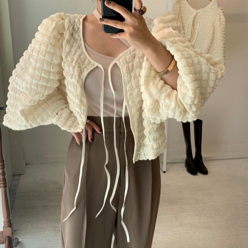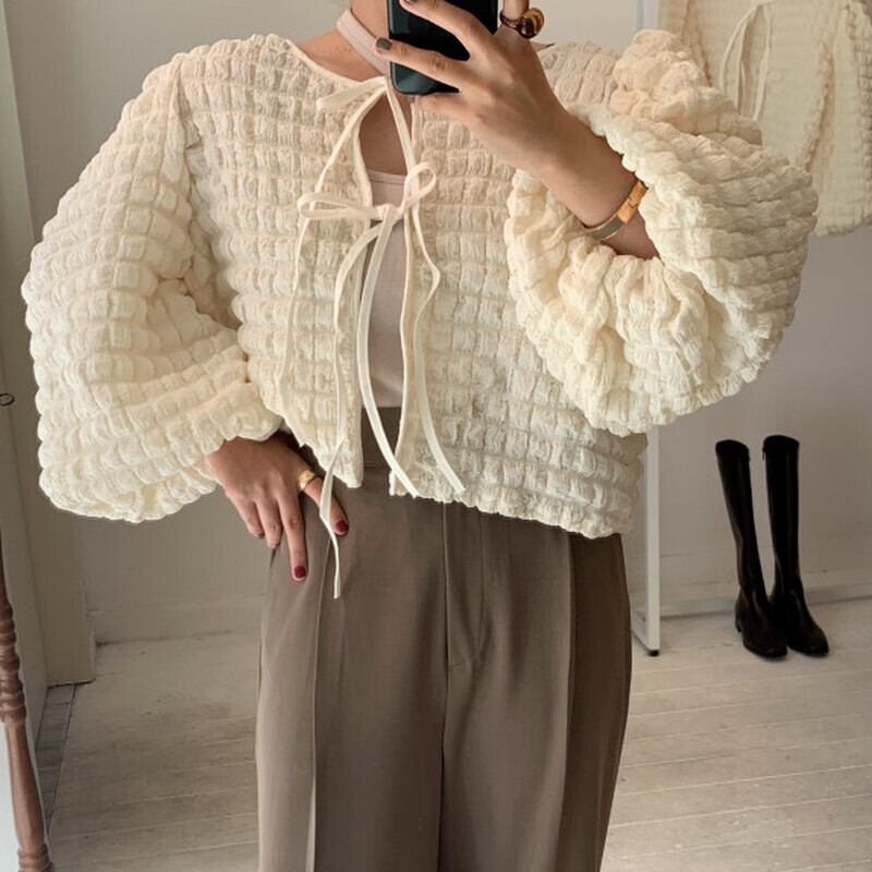 Nomikuma 2021 秋の女 ショート リボン 大人ガーリー スウィート キュート カジュアル オータム 秋物 Oネック kor29554383509