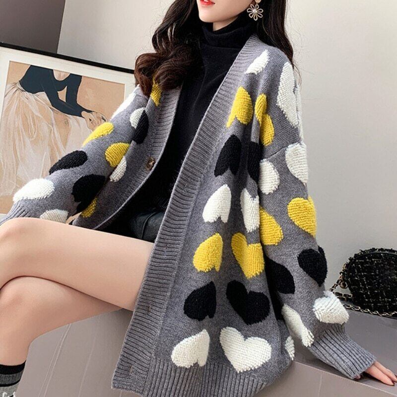 Nomikuma ラブハートジャガードニットカーディガン女性長袖 V ネックセーターコート 2021 秋冬ニット 6K733 ロング オータム 秋物 ウィンター 冬物 Vネック kor36853664502