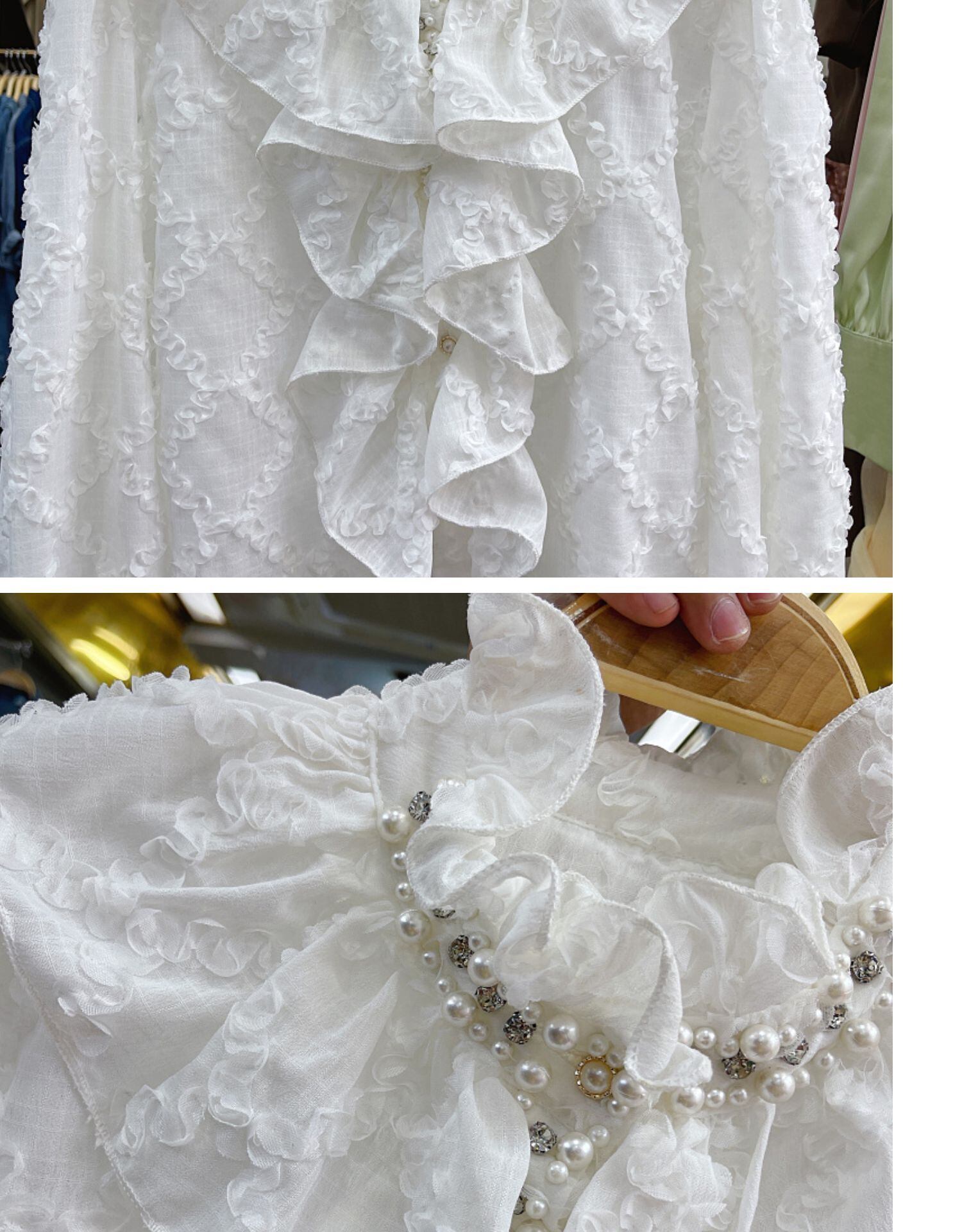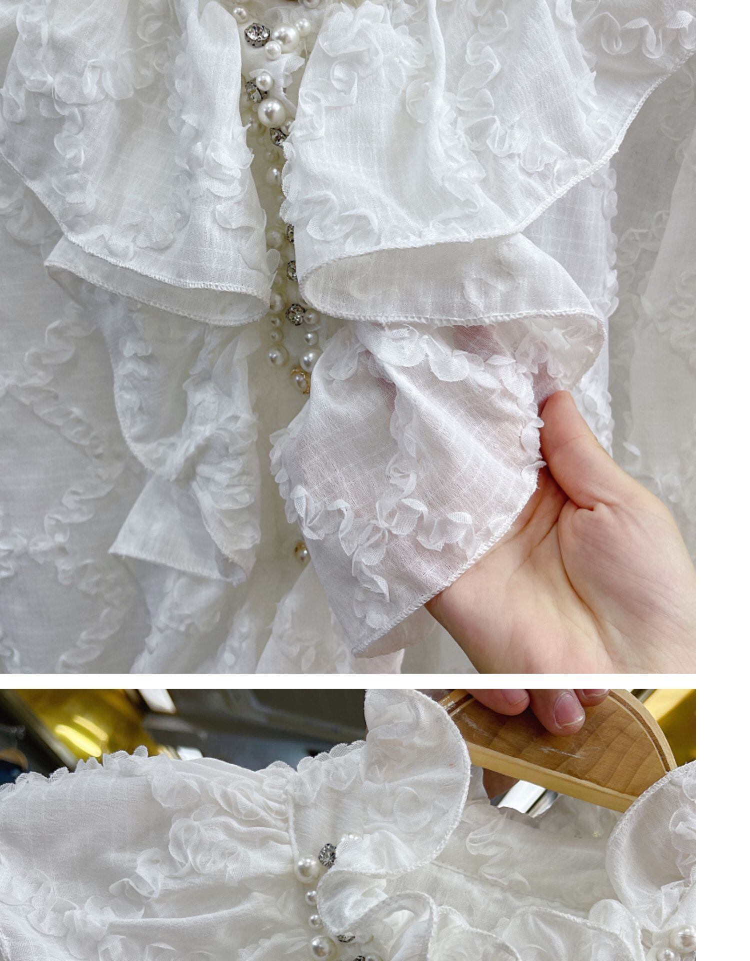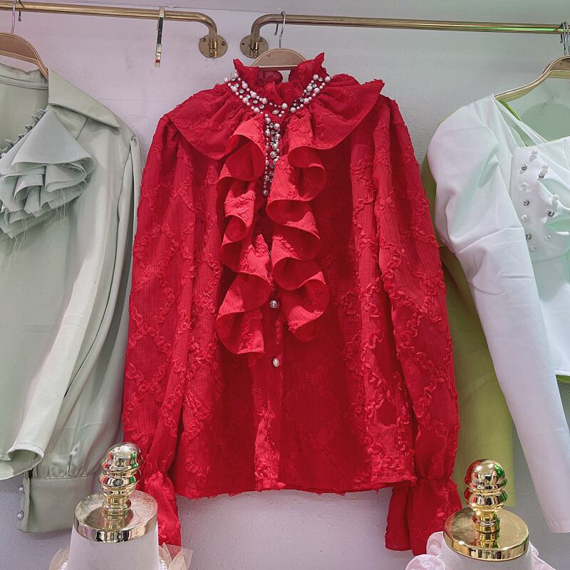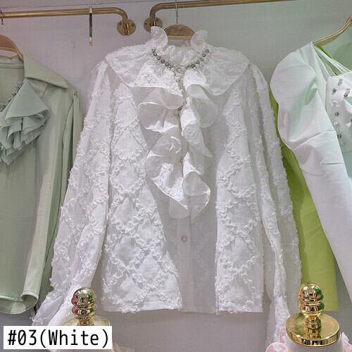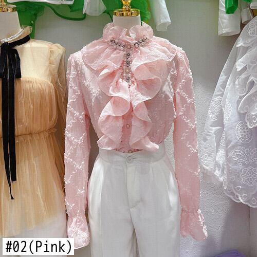 ノミクマビーズフリルスタンドネックデモーダ2022秋フレアスリーブブラウスシャツ オータム 秋物 kor26569544234