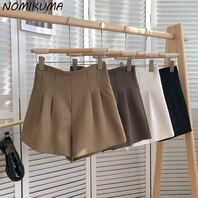 ノミクマ 2022 夏 レディース ショーツ ウエストボトムス カジュアル 無地 ワイドレッグ ショート Feminimos サマー 夏物 ブルマー ワイドパンツ ソリッドカラー kor14006119145