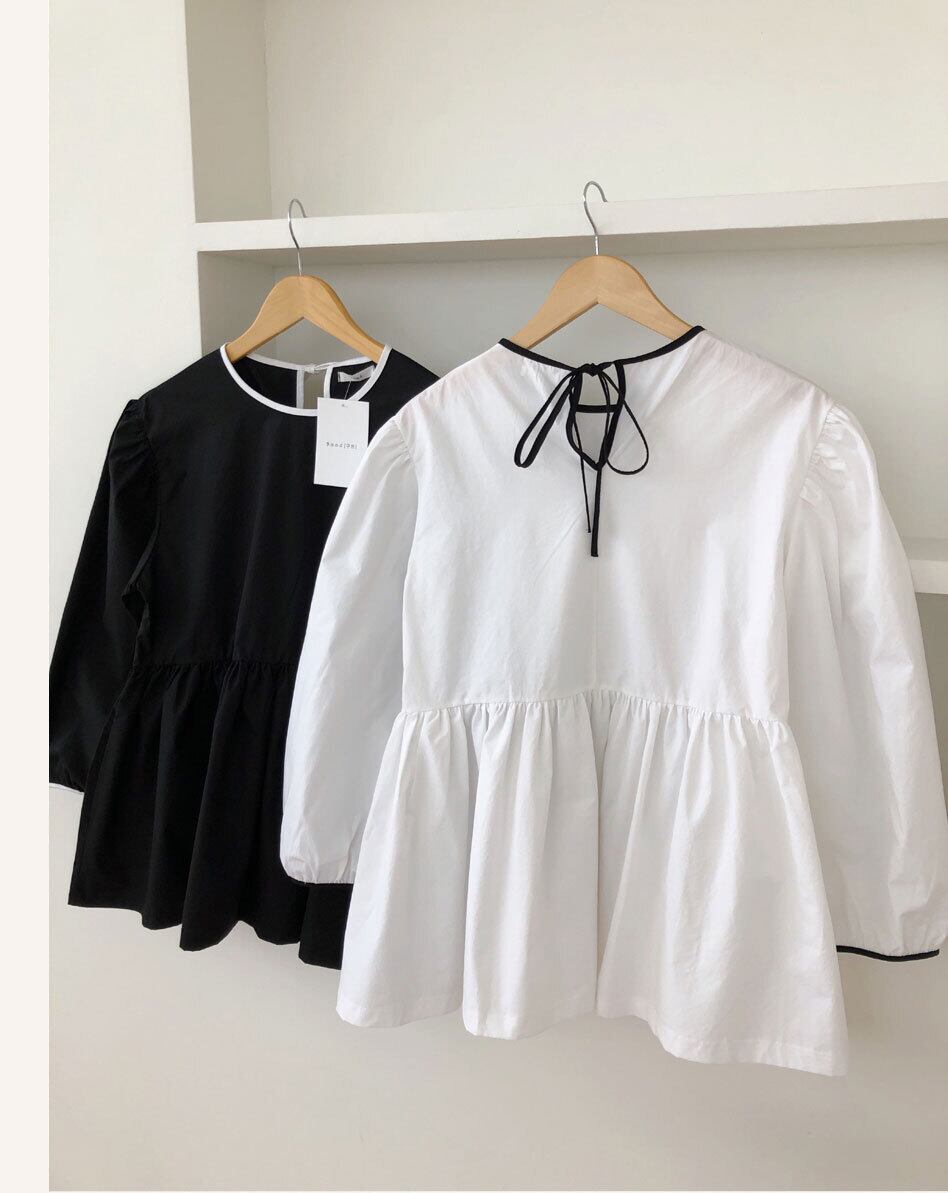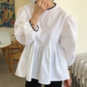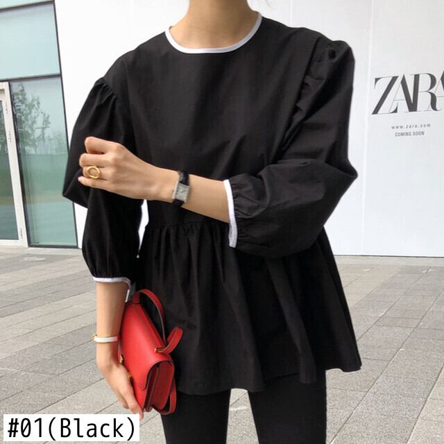 Nomikuma 女性ドールシャツ因果パフ長袖ヒットカラー O ネックブラウス 2020 スウィートトップ Feminimos 6D595 ロング 大人ガーリー キュート カジュアル Oネック kor28681411446