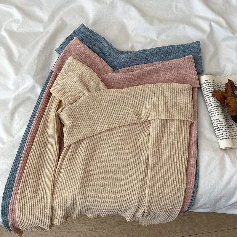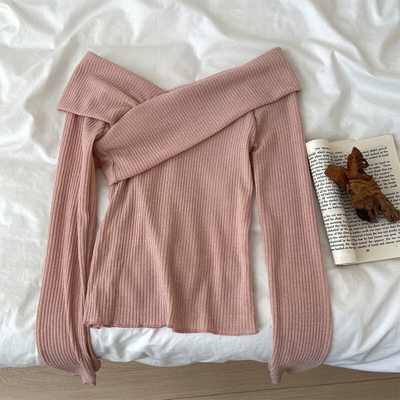Nomikuma ソリッドスラッシュネックセクシーなニット女性 2022 秋の女性ニット長袖ベーシックストレッチスリムプルオーバーセーター ロング オータム 秋物 ソリッドカラー kor75559904970