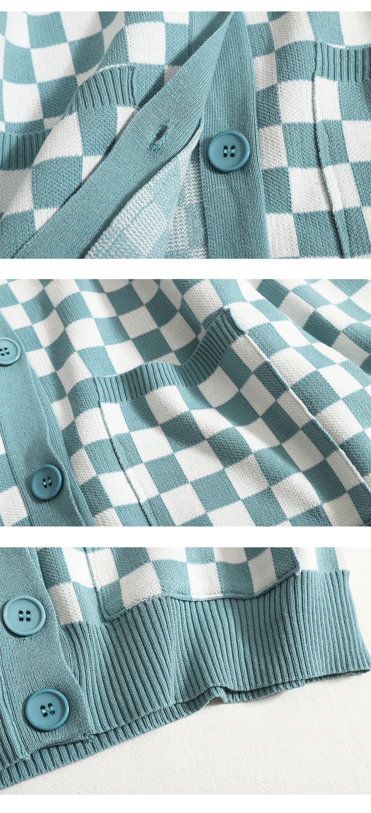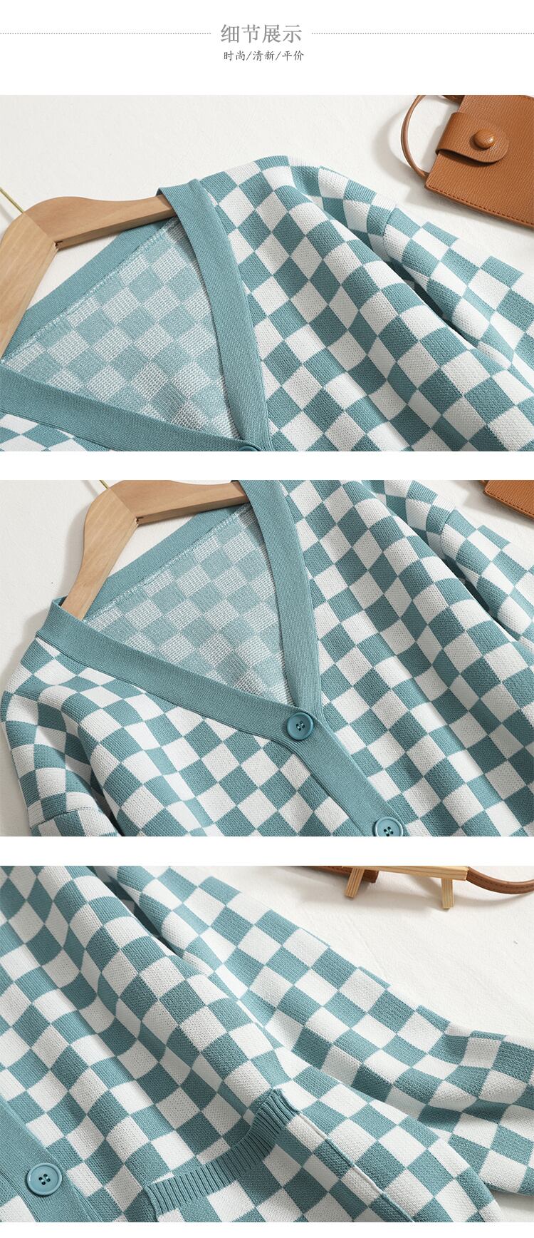 ノミクマ 2022 秋冬 ニット レディース ツーピース セット チェック柄セーター カーディガン コート + レースアップ ウエスト ワイドレッグ ロングパンツ オータム 秋物 ウィンター 冬物 ワイドパンツ kor48998553478