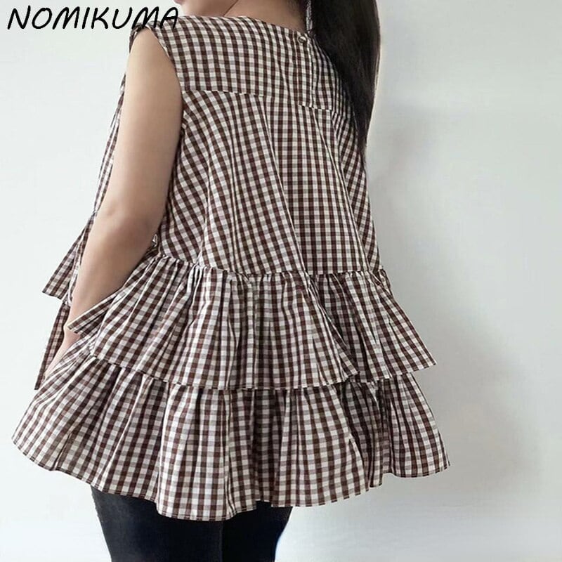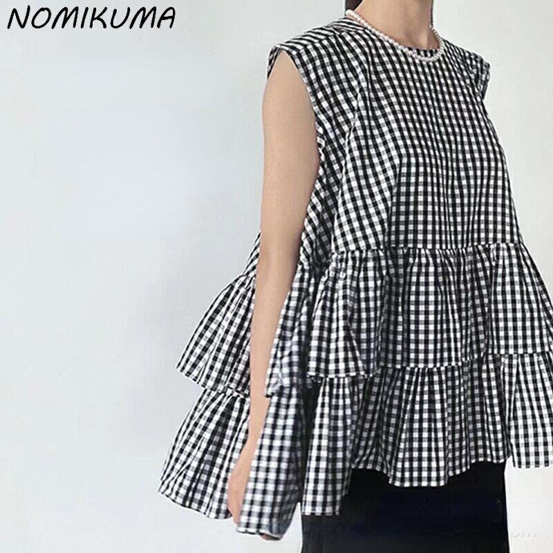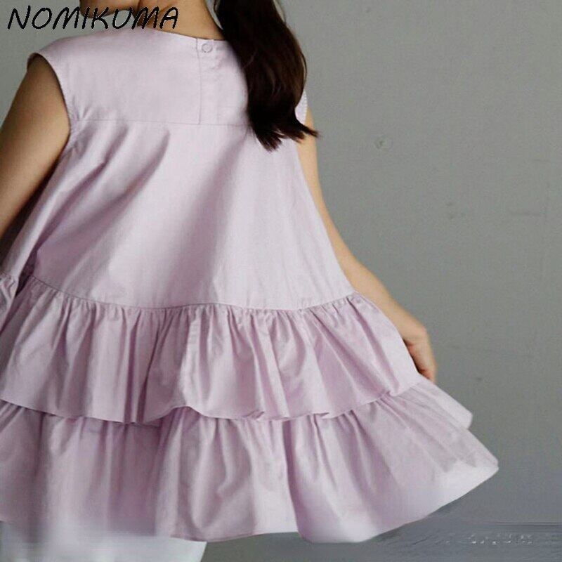Nomikuma 女性スタイル ノースリーブ フリル ドール シャツ因果 2022 夏トップ シックな甘いトップス 大人ガーリー スウィート キュート カジュアル サマー 夏物 kor15463676295