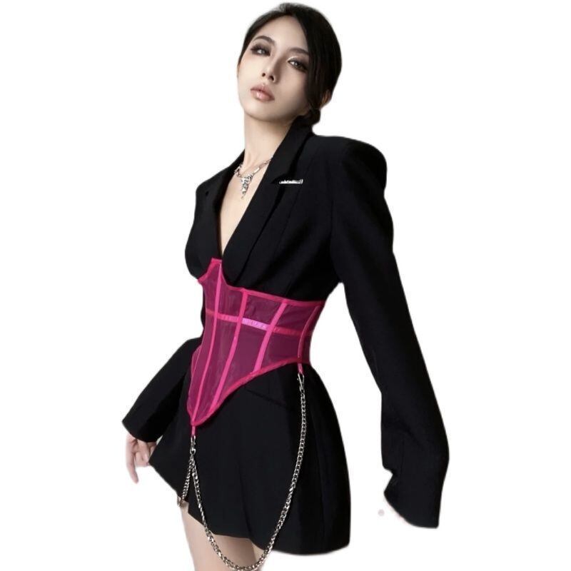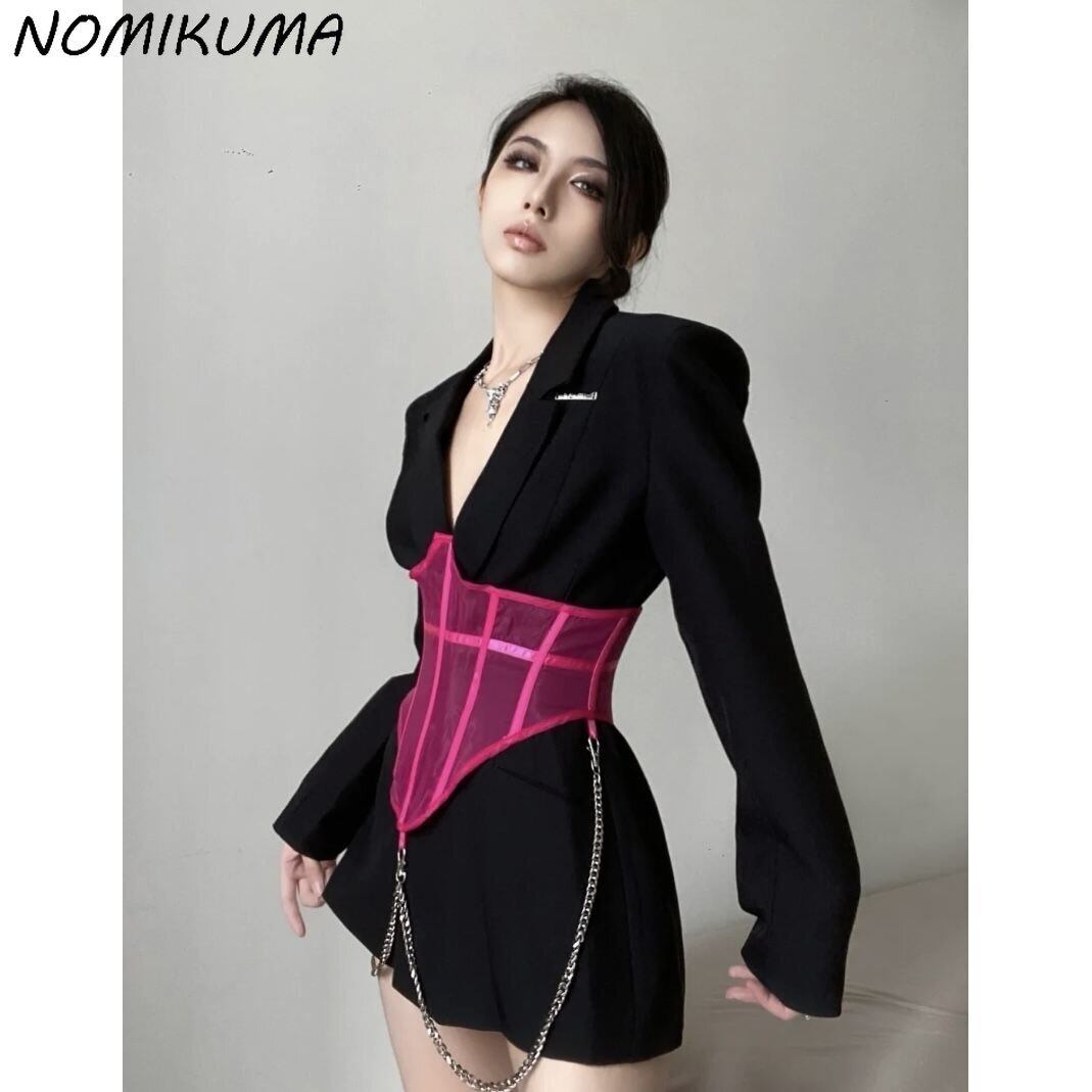 Nomikuma 2022 秋ミディアムロングブレザー女性シングルブレストノッチカラースーツジャケット + ピンクスリム Wiast ベルト オータム 秋物 ハーネス kor47597053150