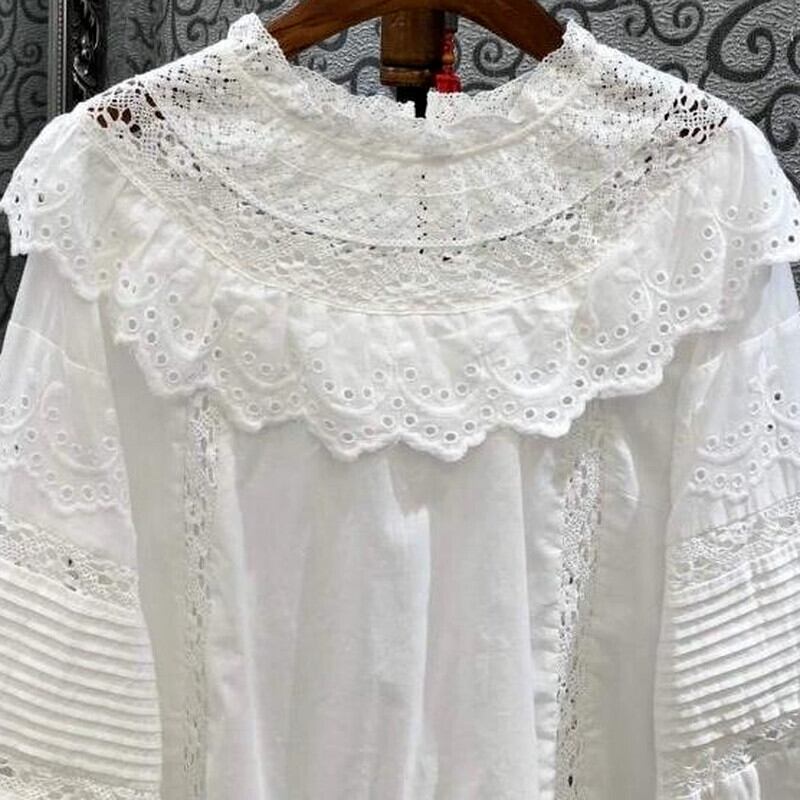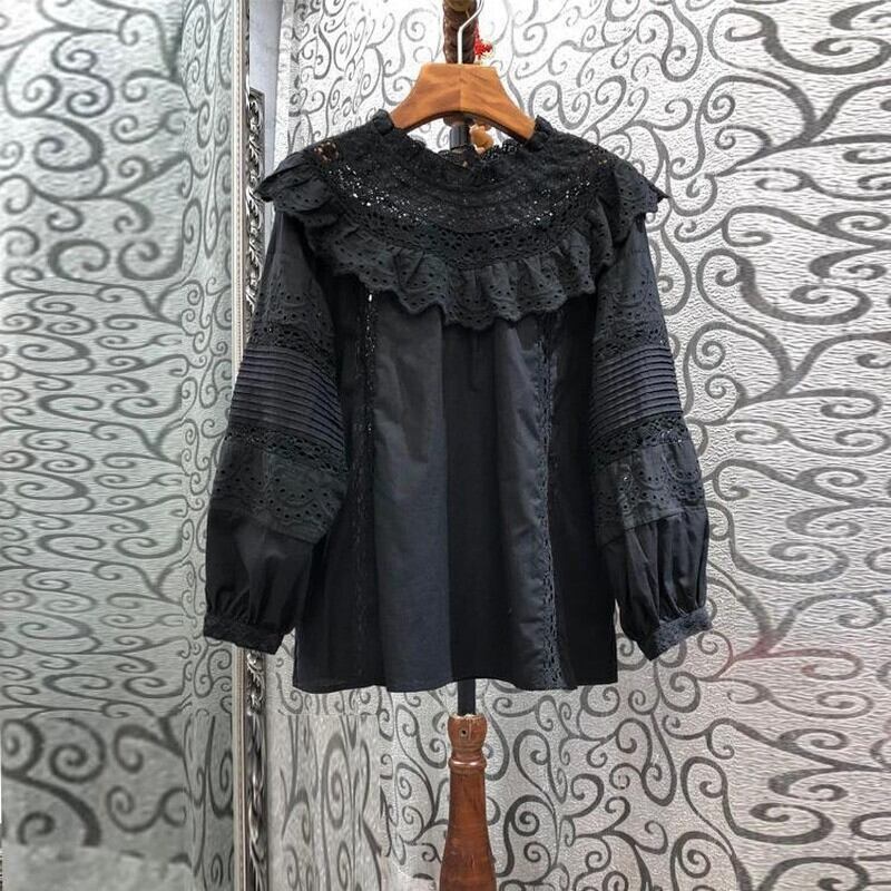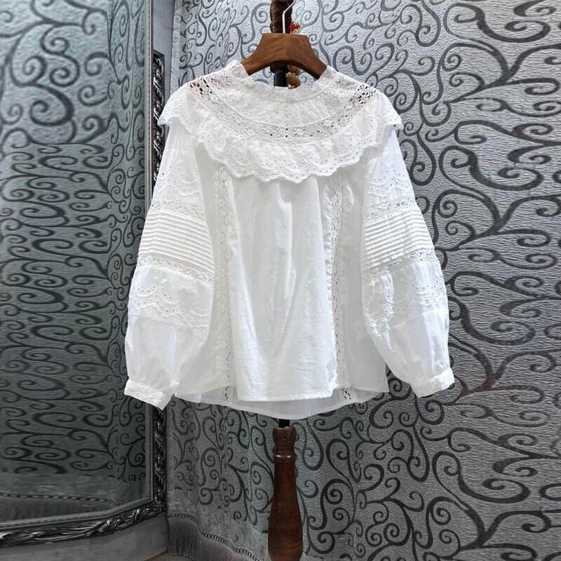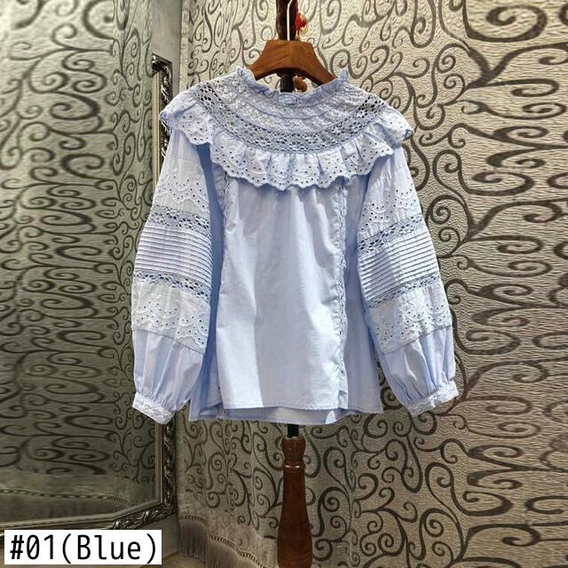 Nomikuma シックなレースフリルブラウス中空アウトパフスリーブスタンドネック女性シャツ秋 2021 デ 6X797 オータム 秋物 kor96681078332
